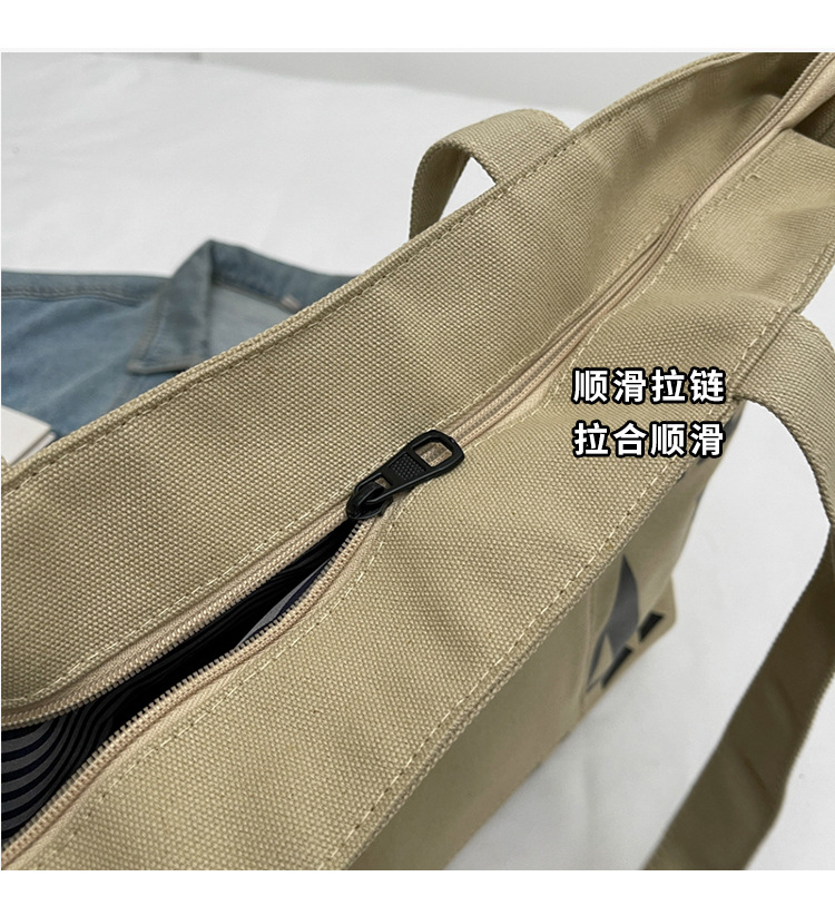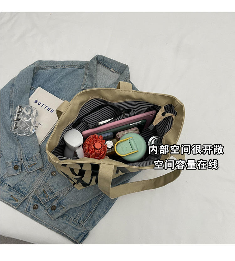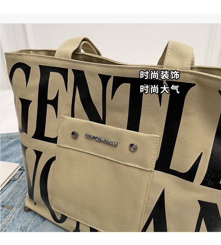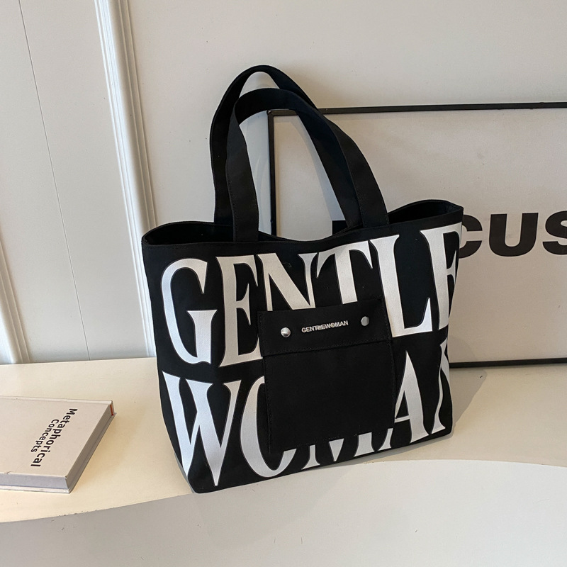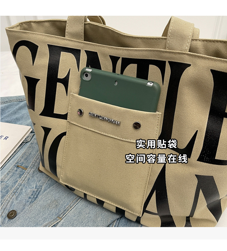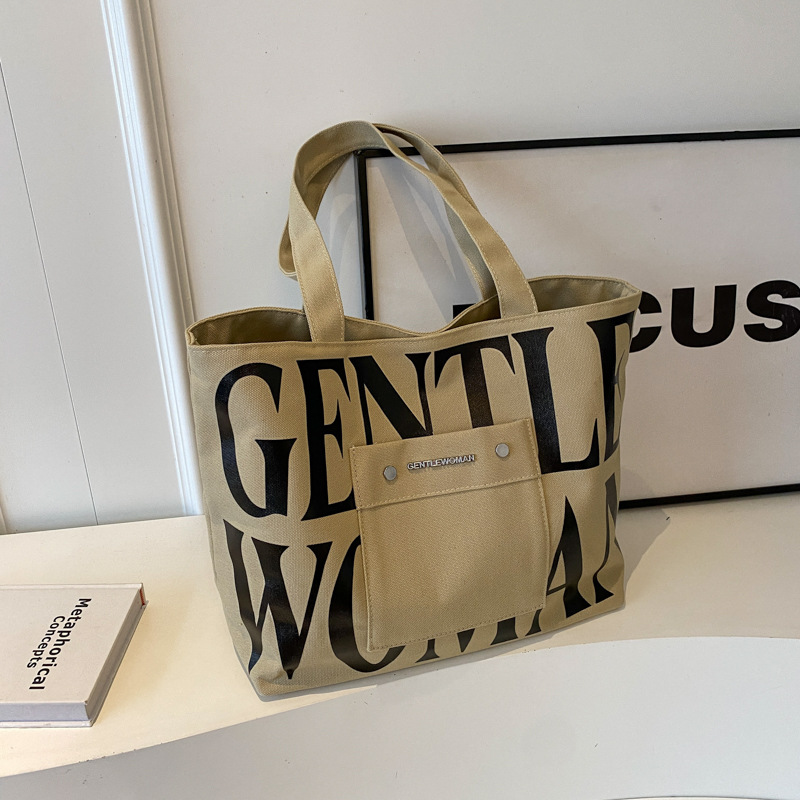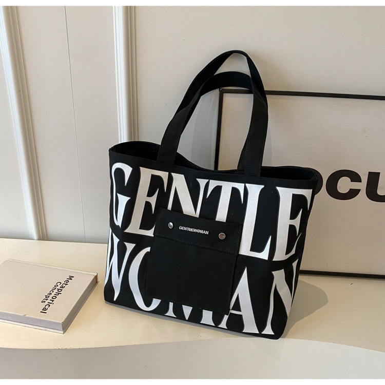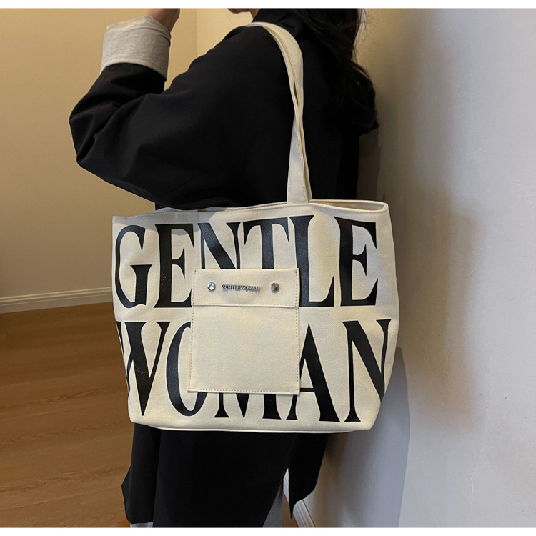 부드러운 여자 대용량 편지 인쇄 손 토트 캔버스 가방 2023 새로운 컬러 블록 어깨 가방스토어 가기