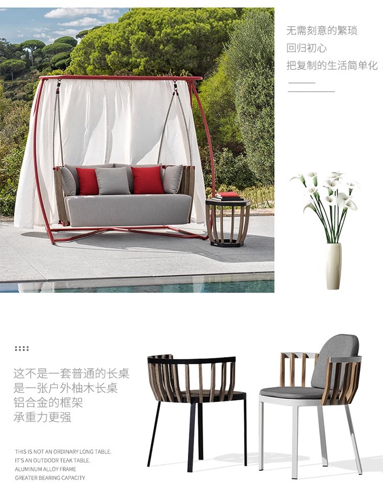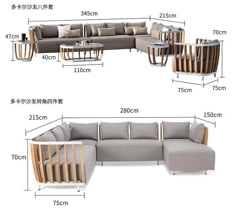 고급 야외 소파 단단한 나무 식탁과 의자 오래된 색상 새로운 중국 빌라 티크 소파 조합 테이블과 의자 일치