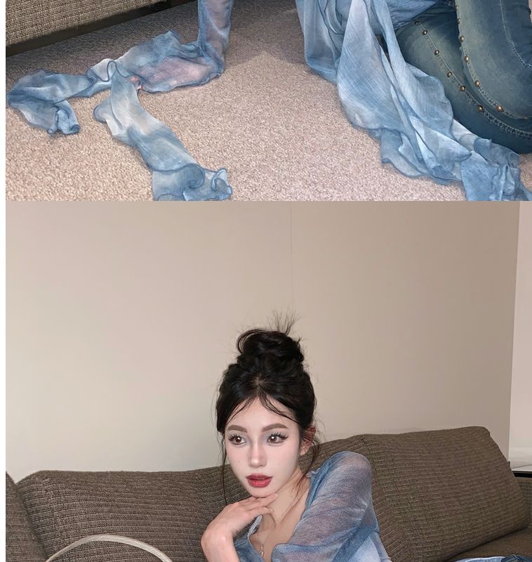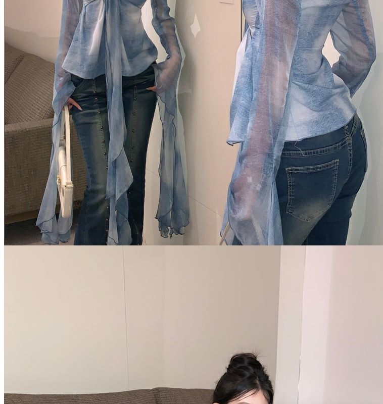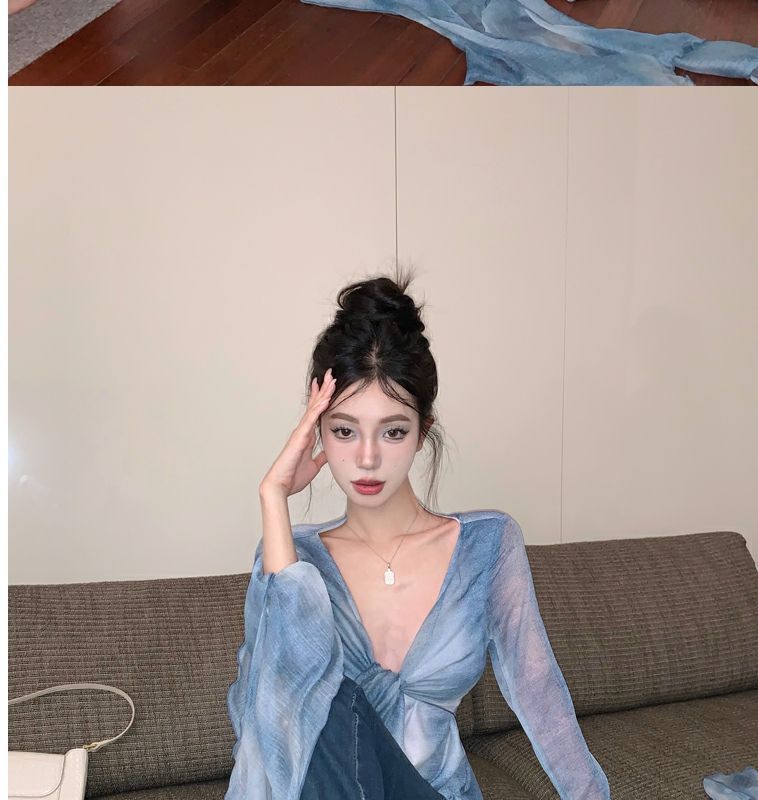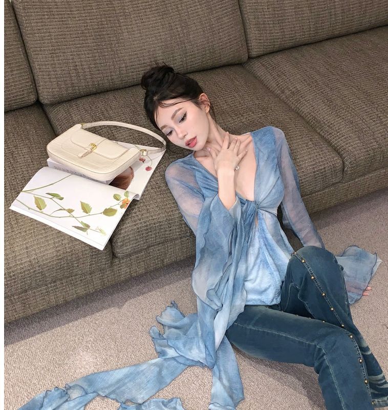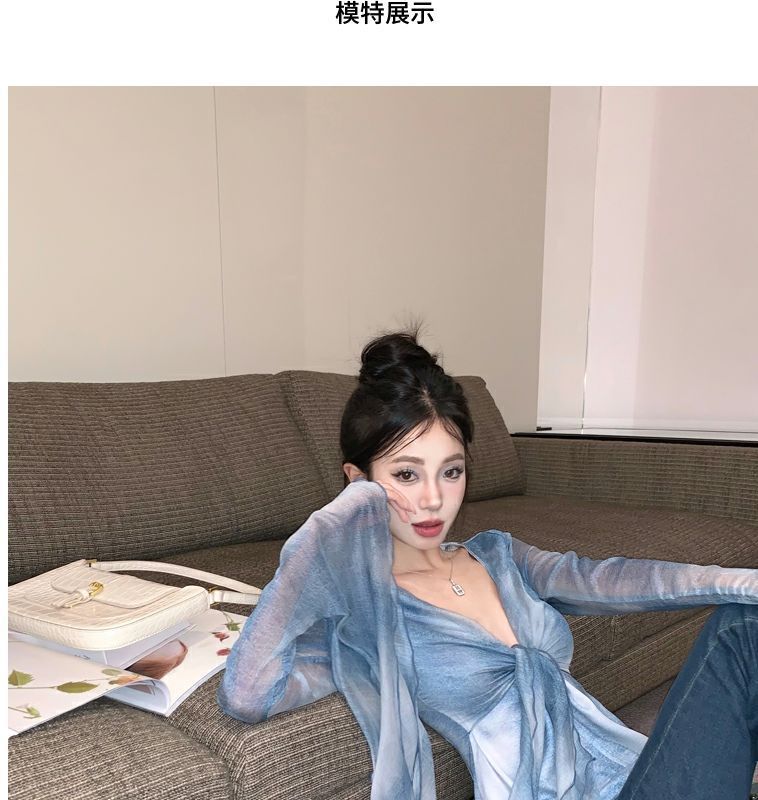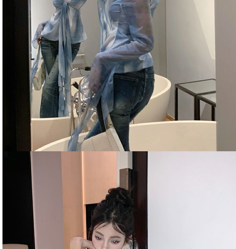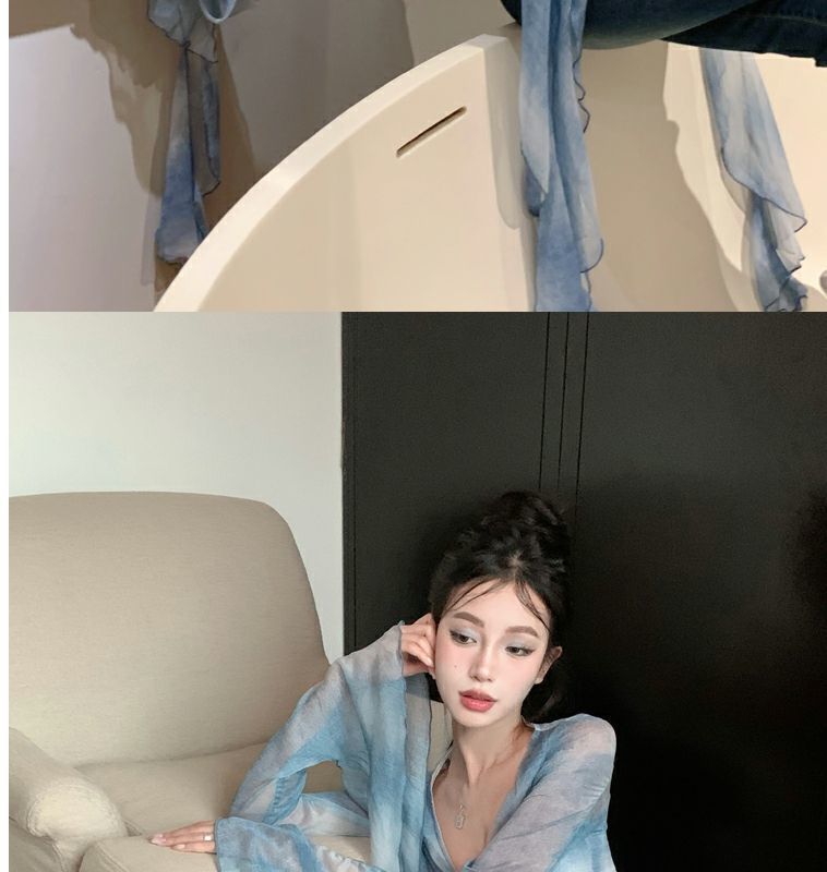 점진적 타이 다이 얇은 긴팔 셔츠 여성용 가을과 겨울 새로운 프랑스 자외선 차단제 셔츠 리본 디자인 틈새 탑스토어 가기