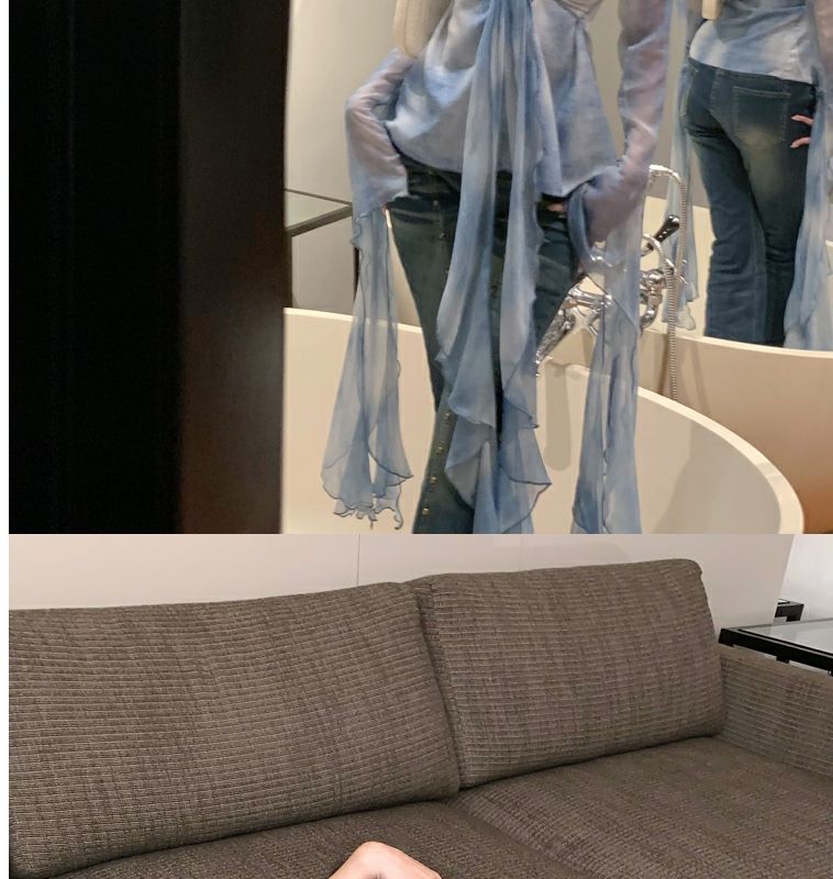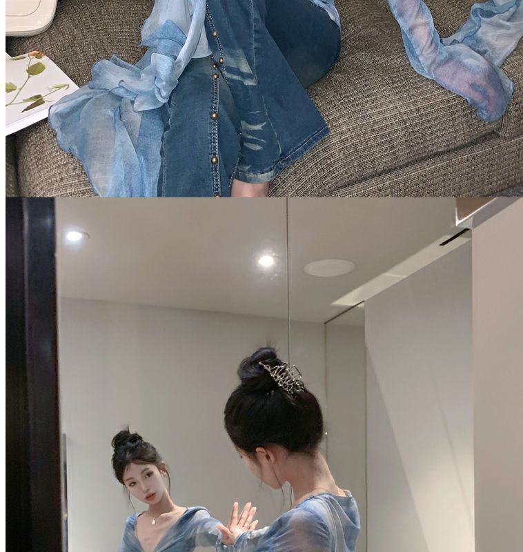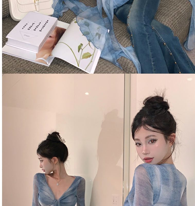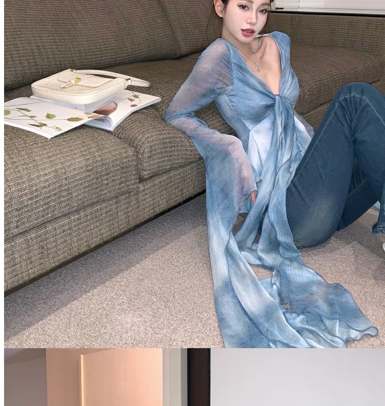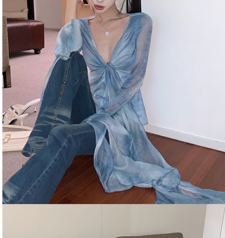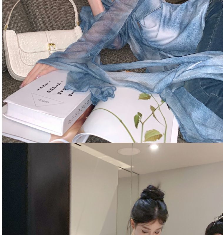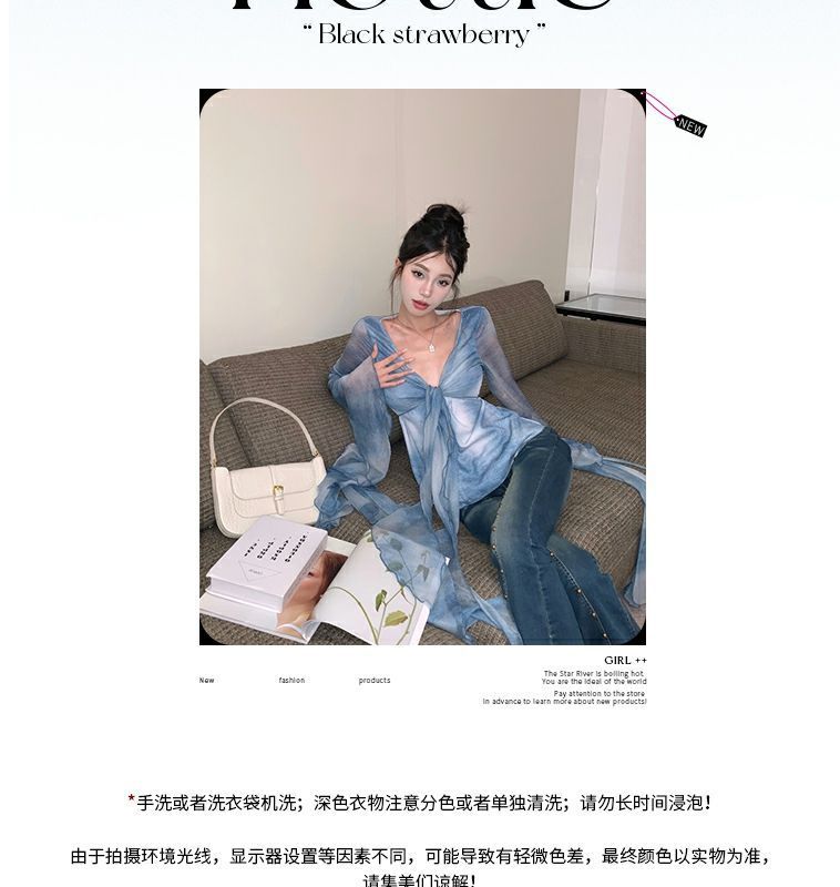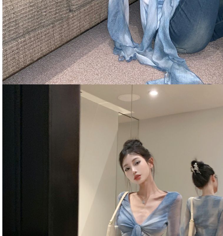 점진적 타이 다이 얇은 긴팔 셔츠 여성용 가을과 겨울 새로운 프랑스 자외선 차단제 셔츠 리본 디자인 틈새 탑스토어 가기