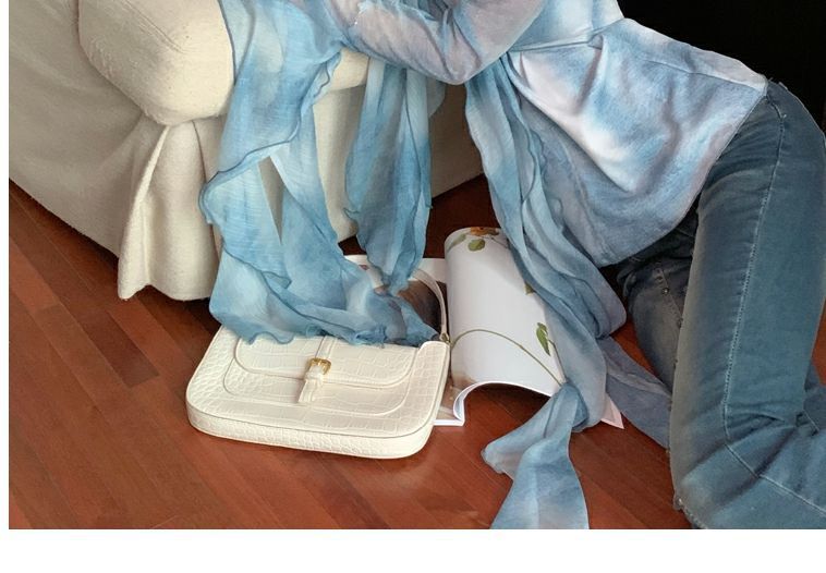 점진적 타이 다이 얇은 긴팔 셔츠 여성용 가을과 겨울 새로운 프랑스 자외선 차단제 셔츠 리본 디자인 틈새 탑