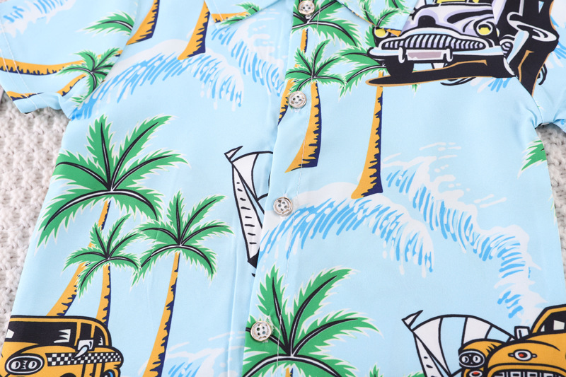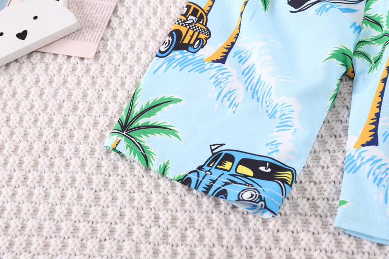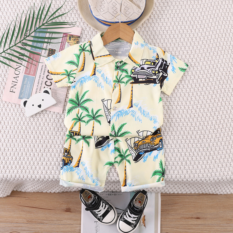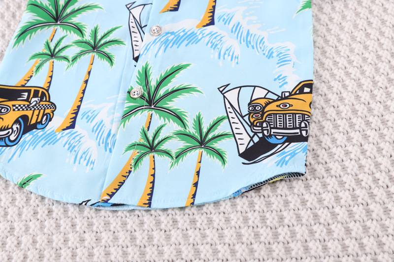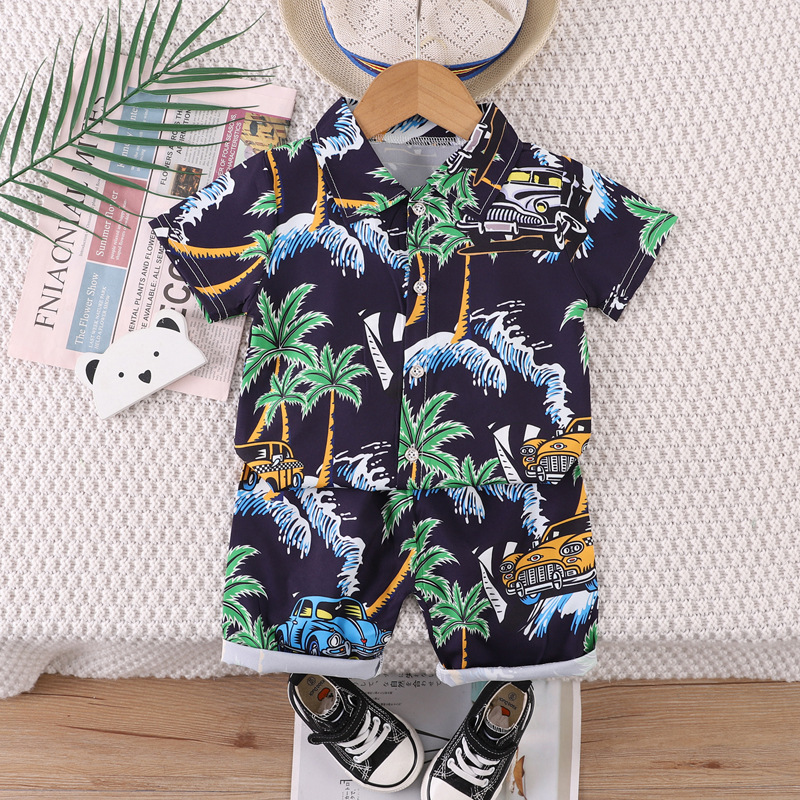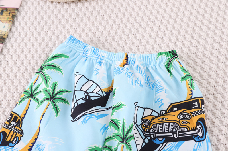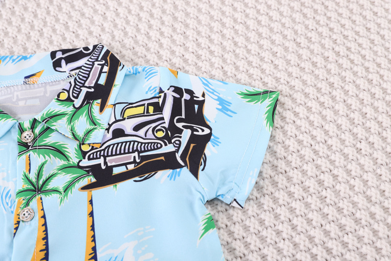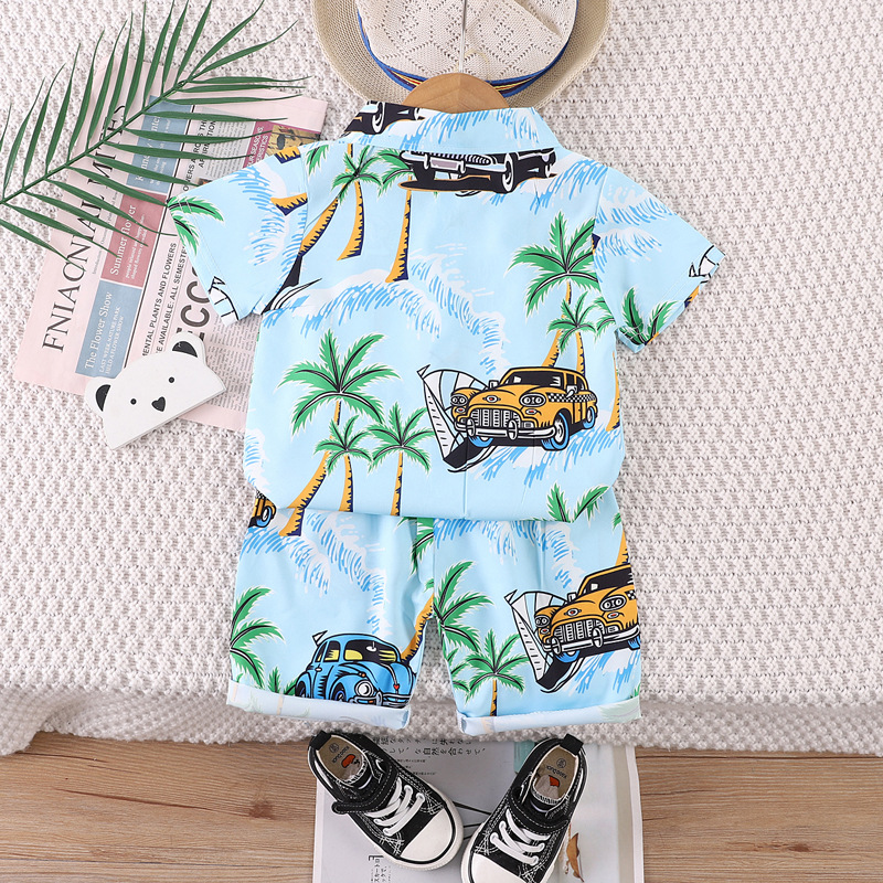 어린이 반팔 정장 하와이 스타일 해변복 0-4세 소년 셔츠 반바지 투피스 세트 만화 패턴