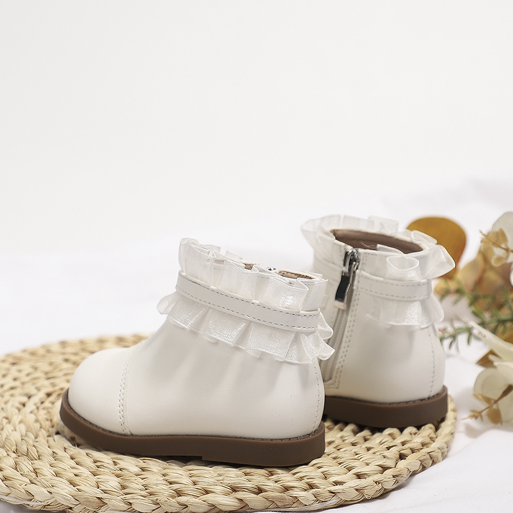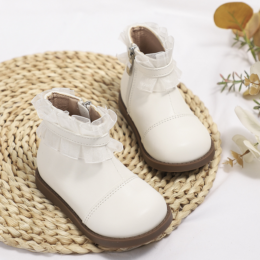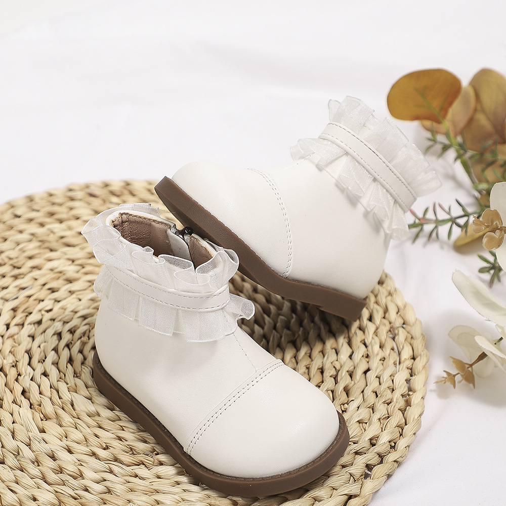 크로스 보더 여자 공주 부츠 2023 가을과 겨울 새로운 짧은 부츠 레이스 미디 부츠 어린이 마틴 부츠 아기 가죽 부츠