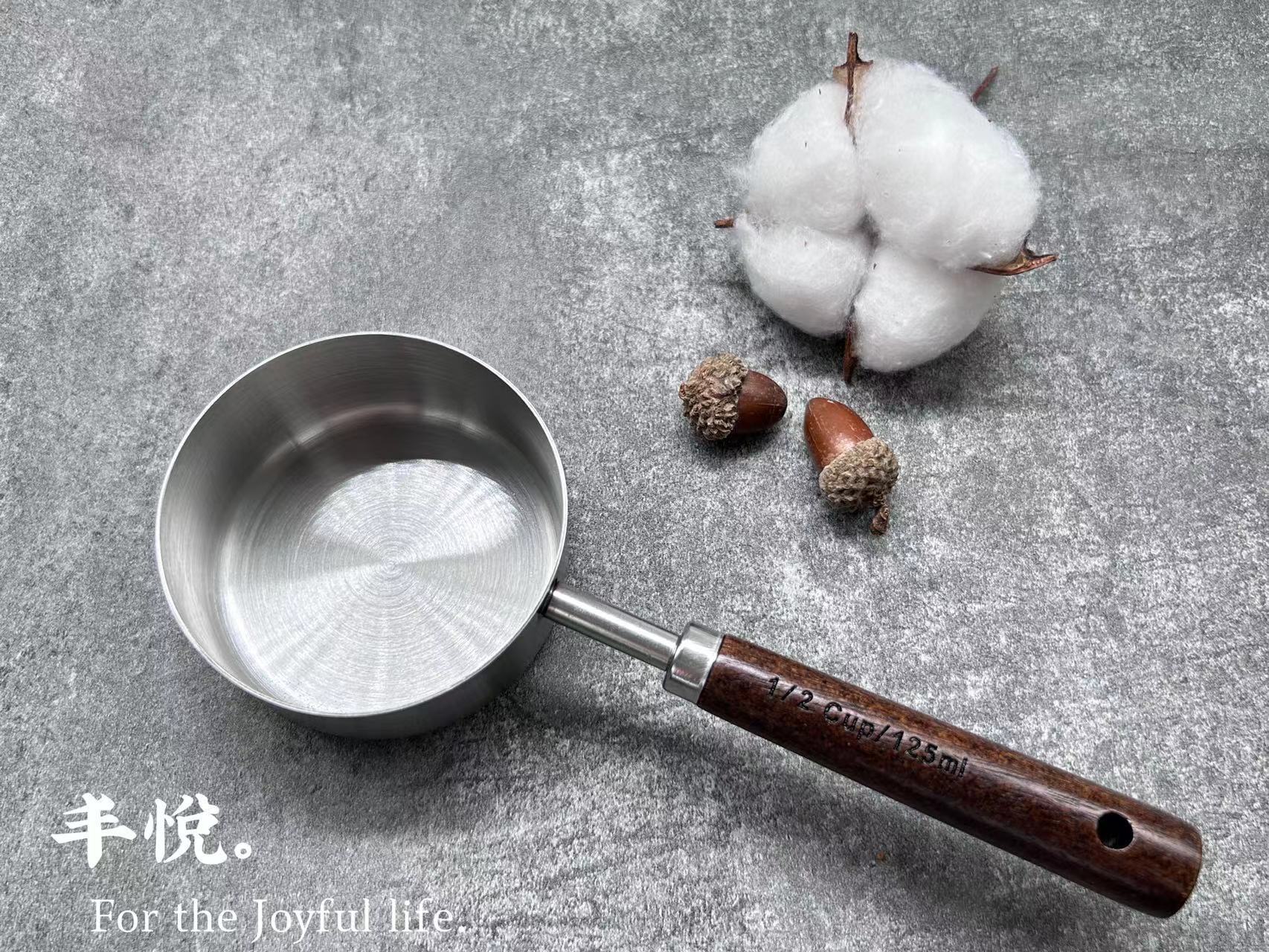 스테인레스 스틸 아카시아 핸들 측정 컵을 가열 할 수 있습니다 기름 붓기 작은 냄비 가열 우유 포트 커피 측정 컵 스케일 측정 컵스토어 가기