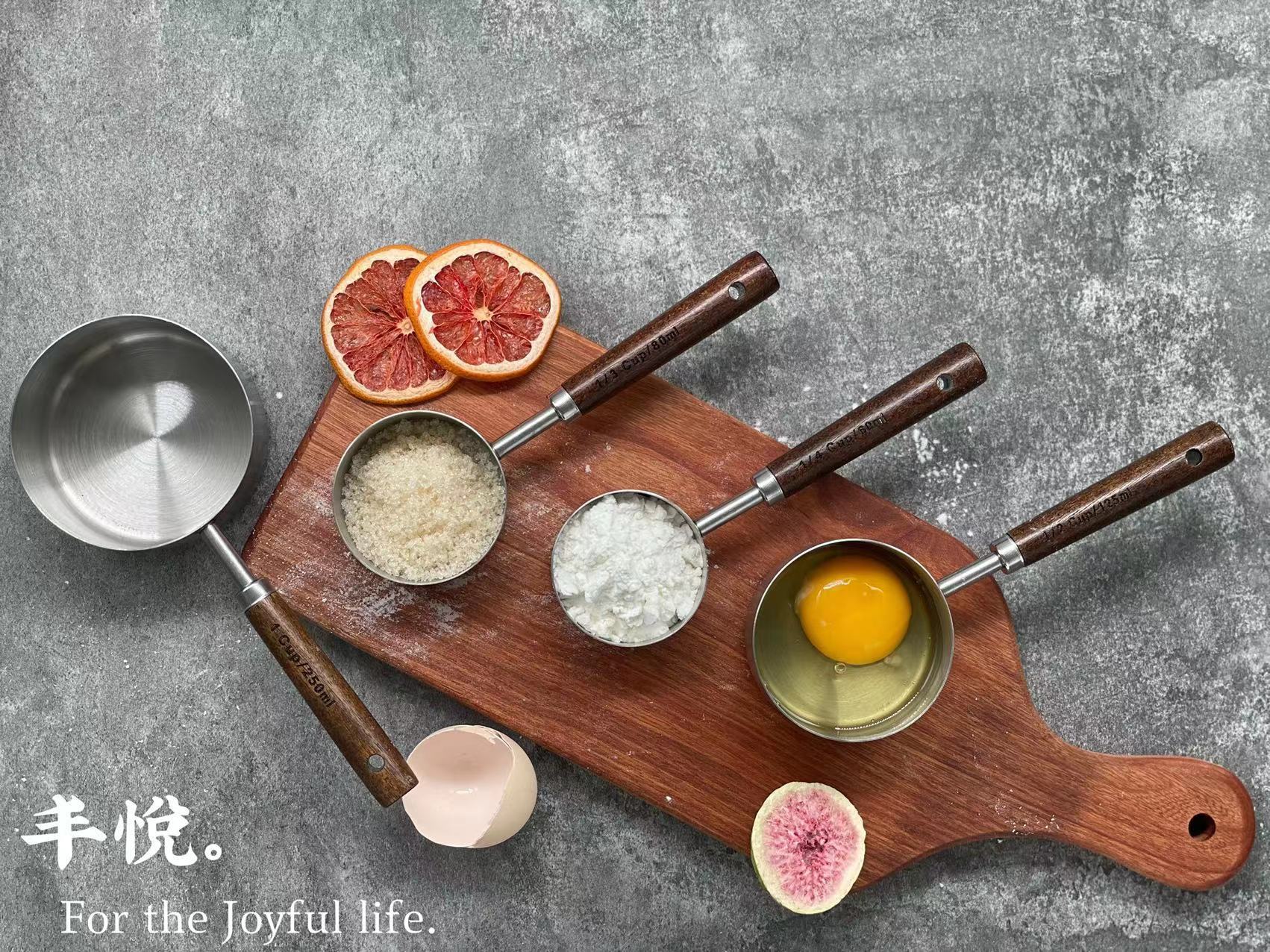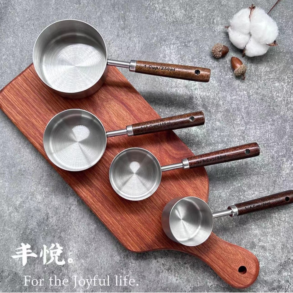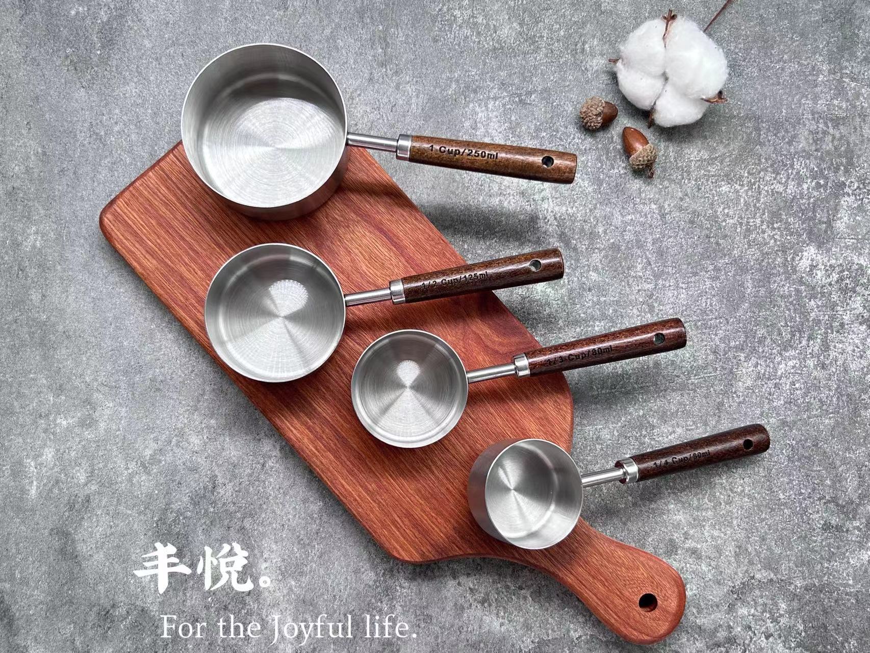 • 스테인리스 스틸 + 아카시아 나무 계량컵 4 피스 세트