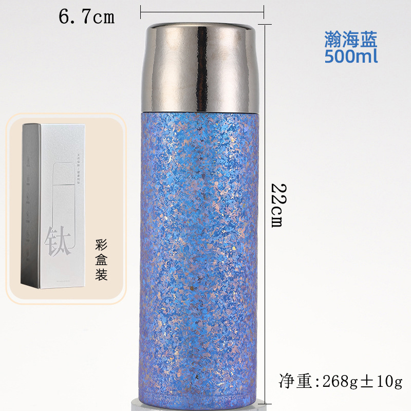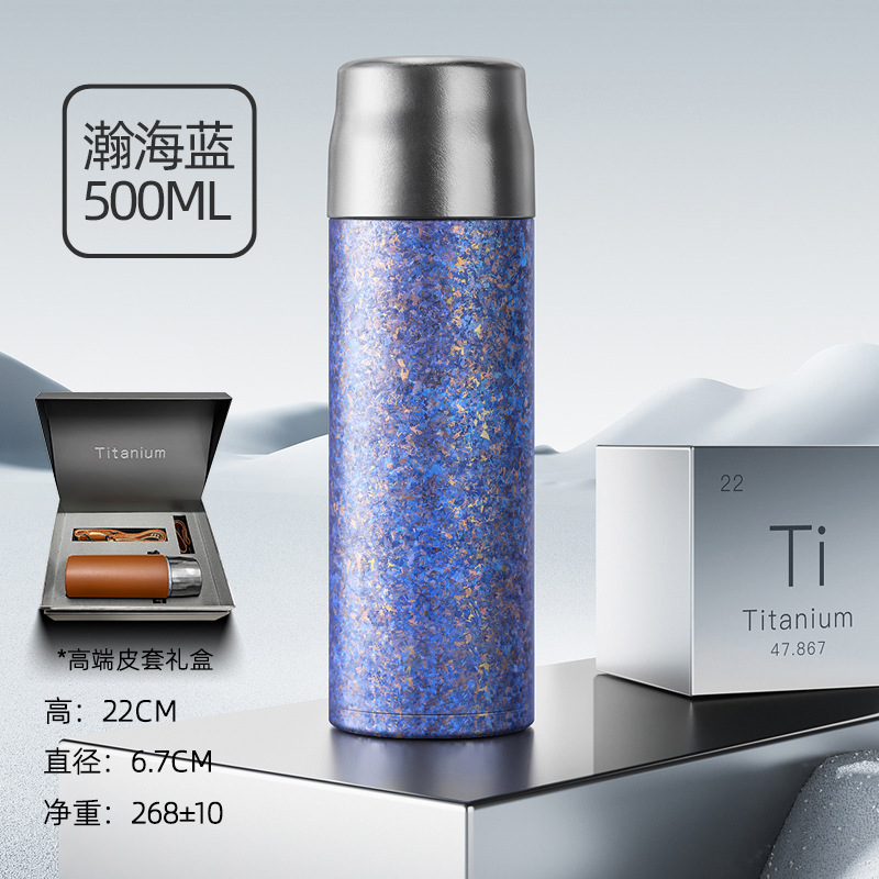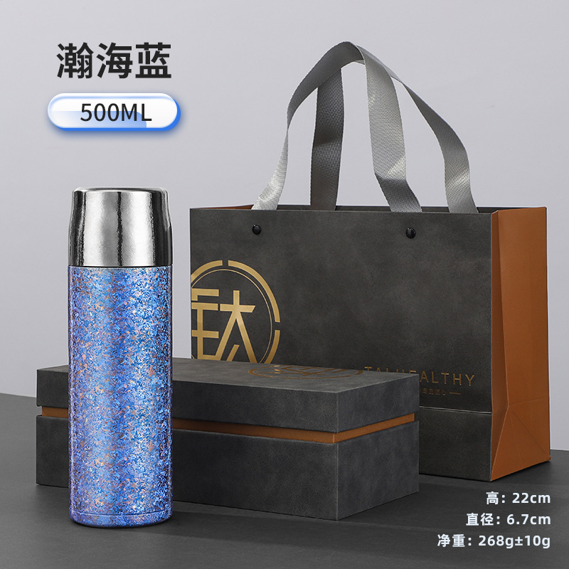 • 티타늄 스튜 보온병 컵 500ml 선물 상자-Hanhai Blue