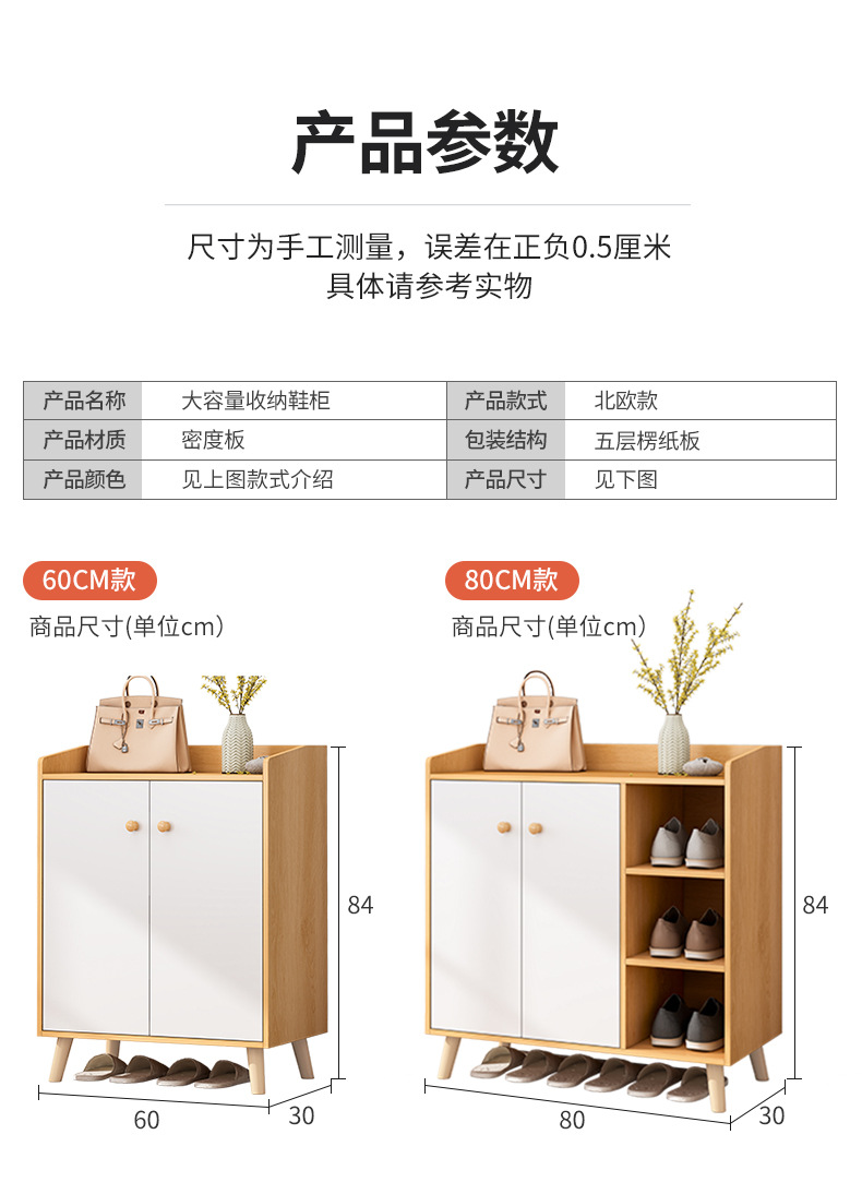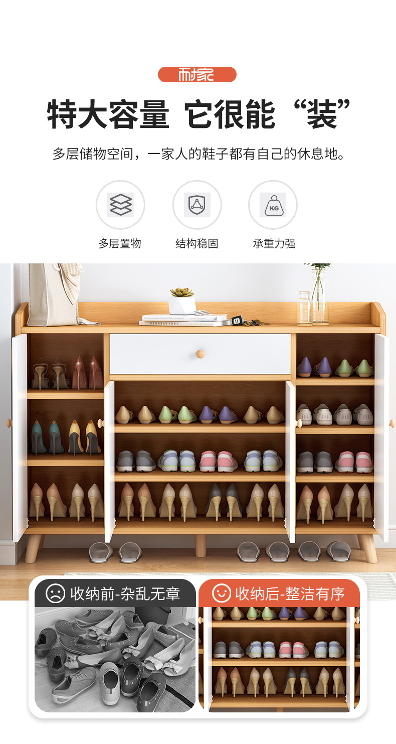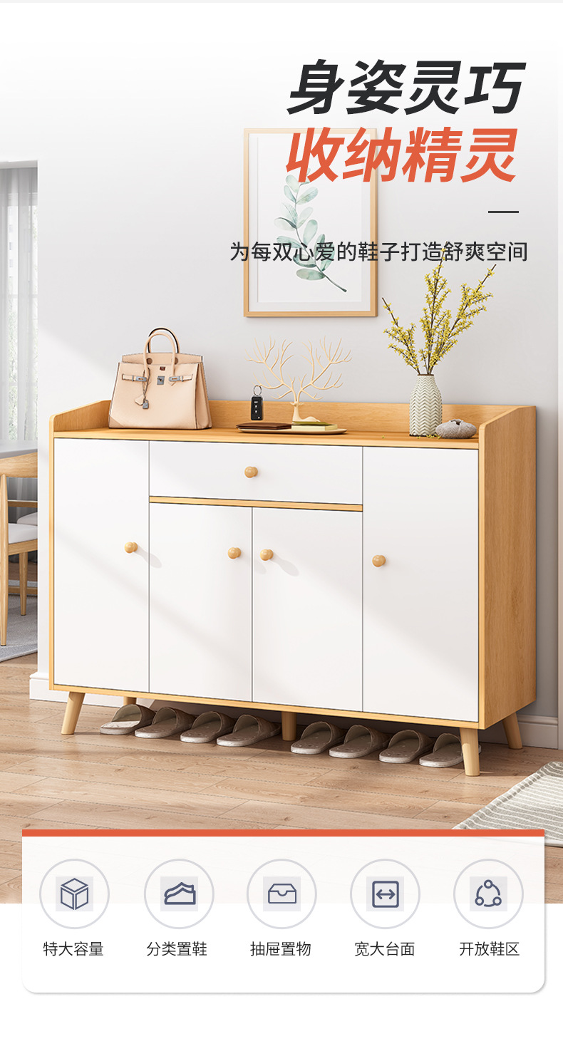 北欧风鞋柜家用门口简易置物玄关柜入户门原木收纳储物大容量鞋架