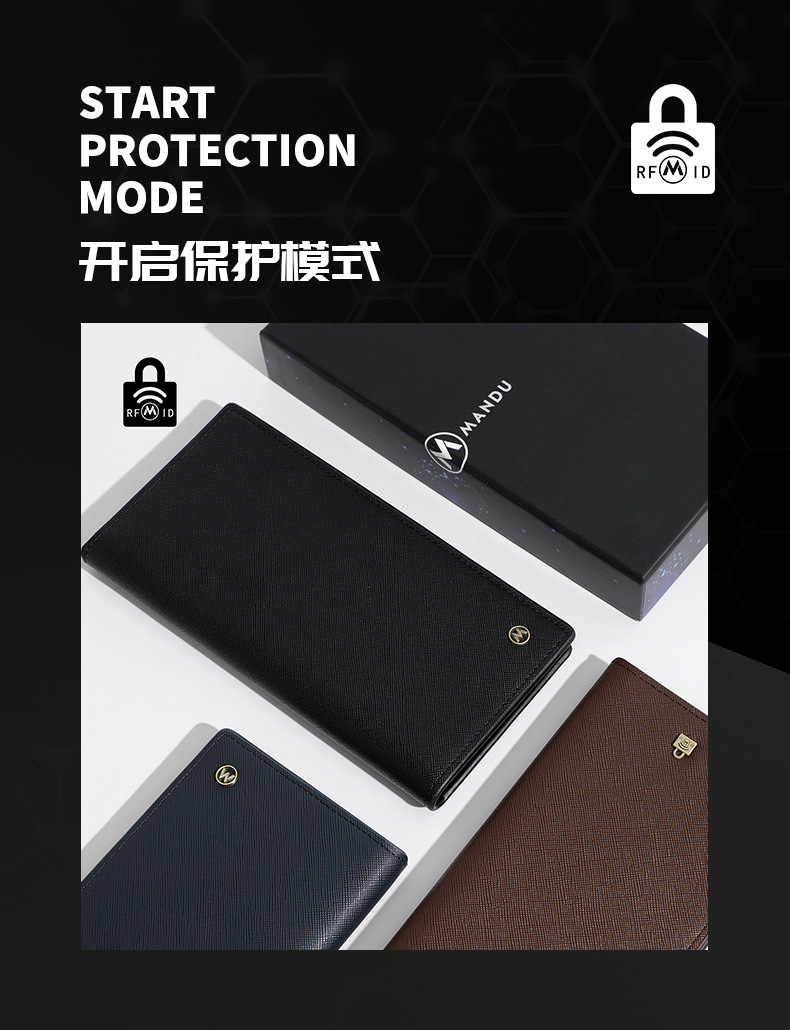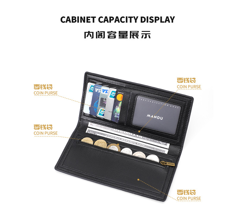 국경 간 새로운 지갑 남자 RFID 긴 유행 지갑 초경량 카드 홀더 대용량 동전 지갑 공장 도매스토어 가기