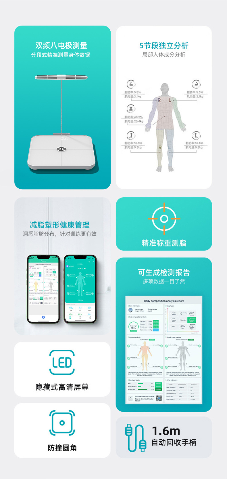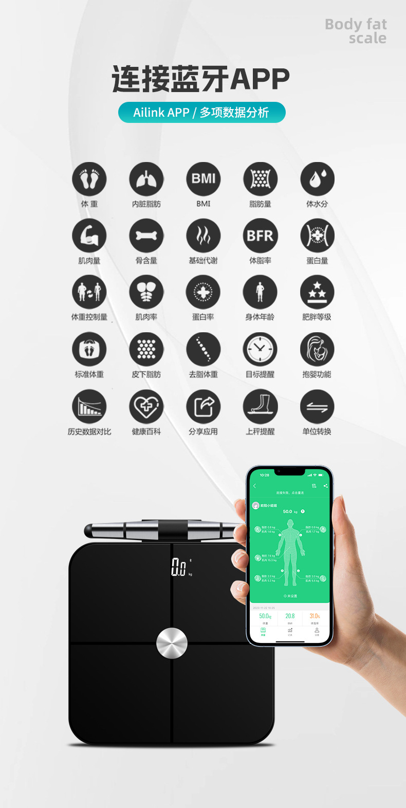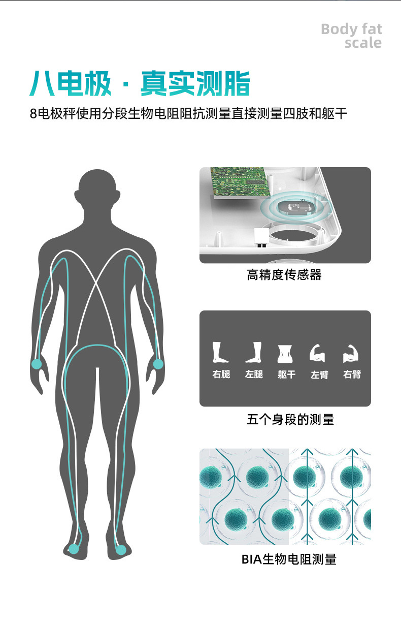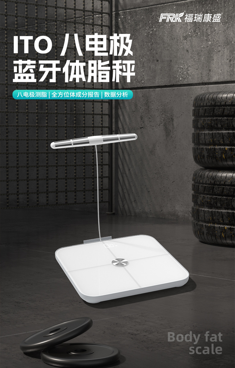 FRK 8 전극 체지방 스케일 재고 스마트 블루투스 APP 지방 감소 지방 측정 전자 규모 아마존 무게 규모