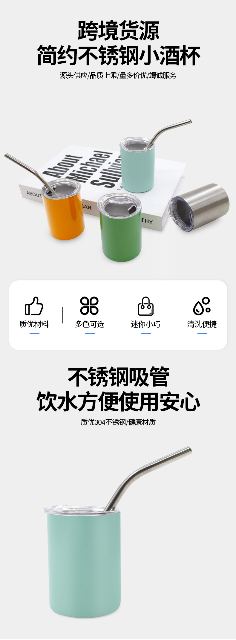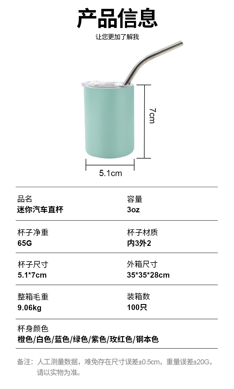 대외 무역 3oz 스테인레스 스틸 작은 와인 컵 스트레이트 바디 스피리츠 맥주 더블 레이어 스테인레스 스틸 흡입 튜브 컵 방한 스피리츠 컵스토어 가기
