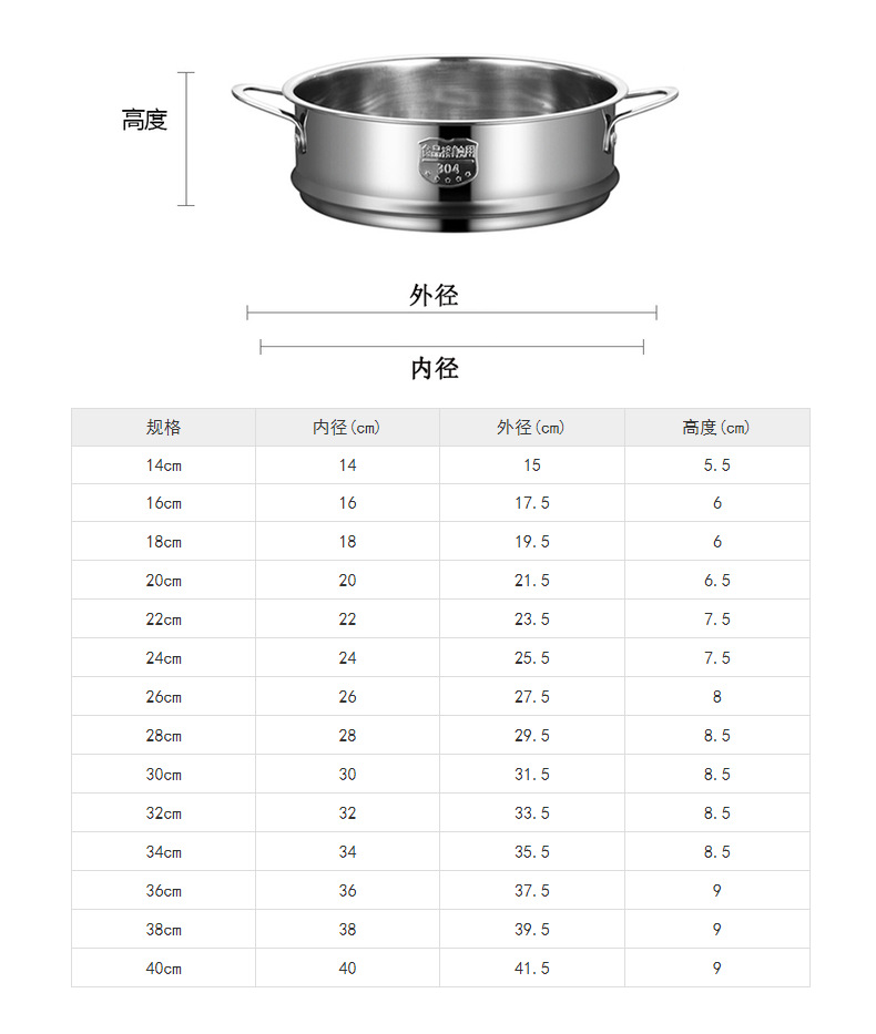 304 스테인레스 스틸 찜기 귀가 있는 도매 다기능 가정용 범용 찜기 (고층 두꺼운 방수 찜기 포함)