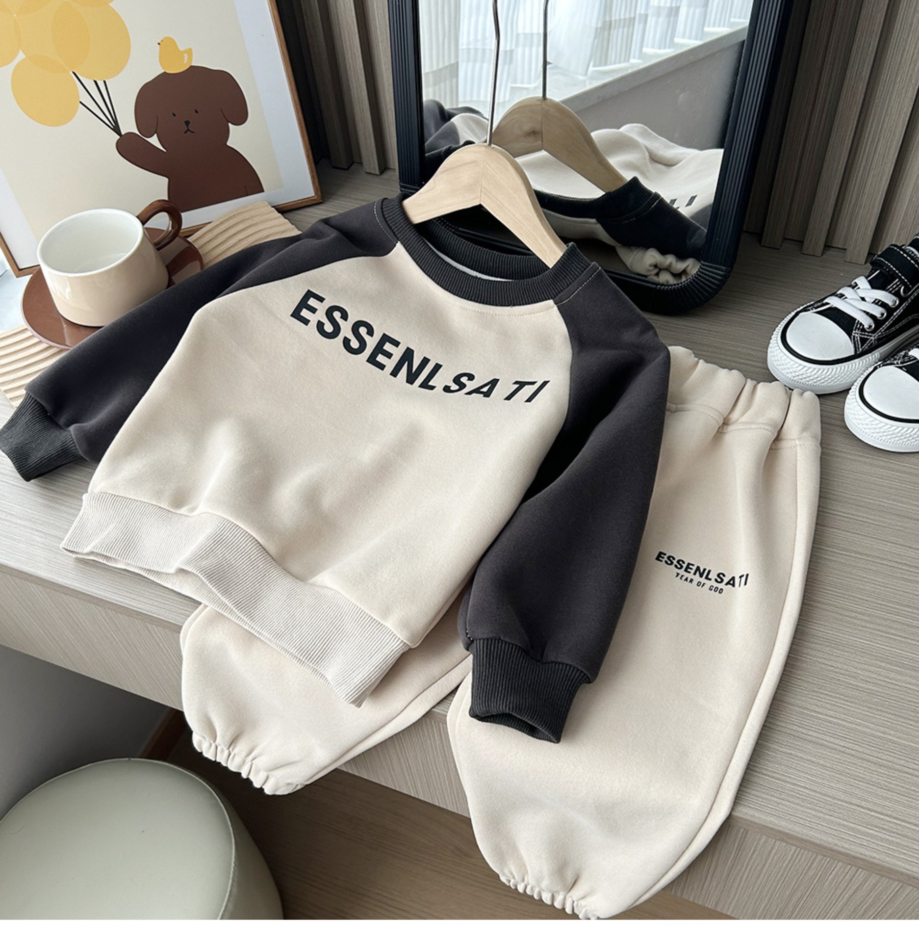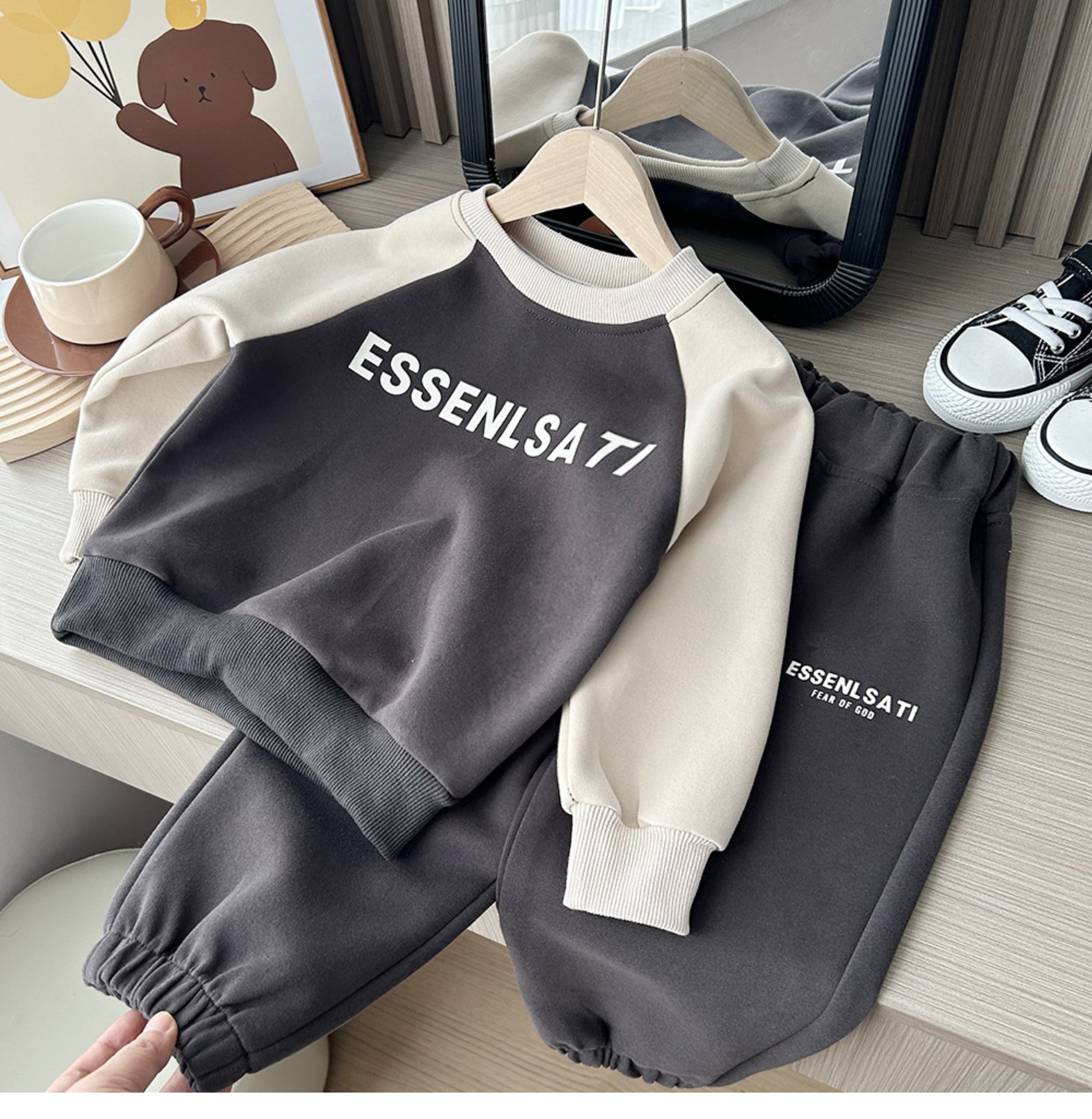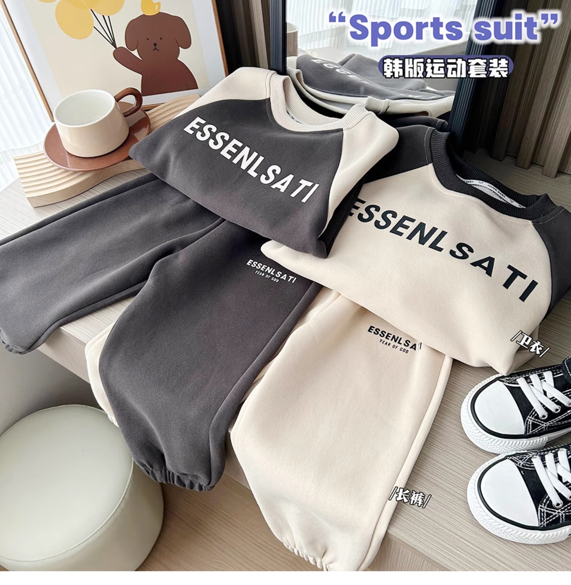 2024 봄 신상 남녀 아동 한국 레저 세트 대학생 스웨터 투피스 스포츠웨어스토어 가기
