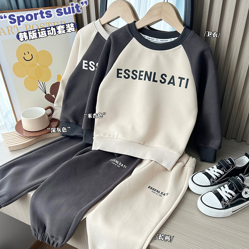2024 봄 신상 남녀 아동 한국 레저 세트 대학생 스웨터 투피스 스포츠웨어