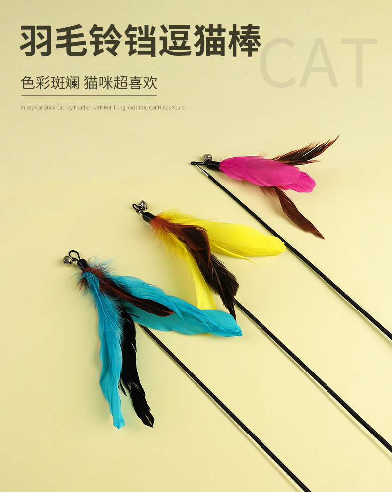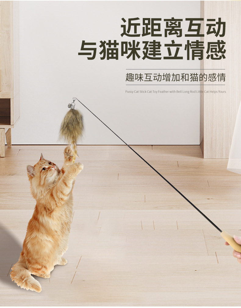 고양이 장난감 고양이 스틱 도매 깃털 벨 단단한 나무 개폐식 고양이 대화 형 물기 방지 고양이 용품 애완 동물 용품스토어 가기