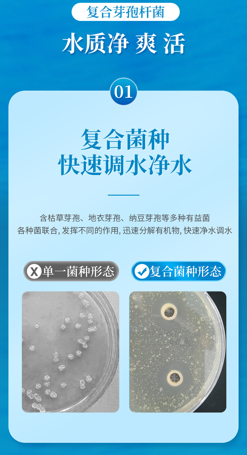 중국 동물 화합물 Bacillus 종 양식을위한 특별한 원래 박테리아 분말 새우 게 연못 생존 가능한 em probiotics