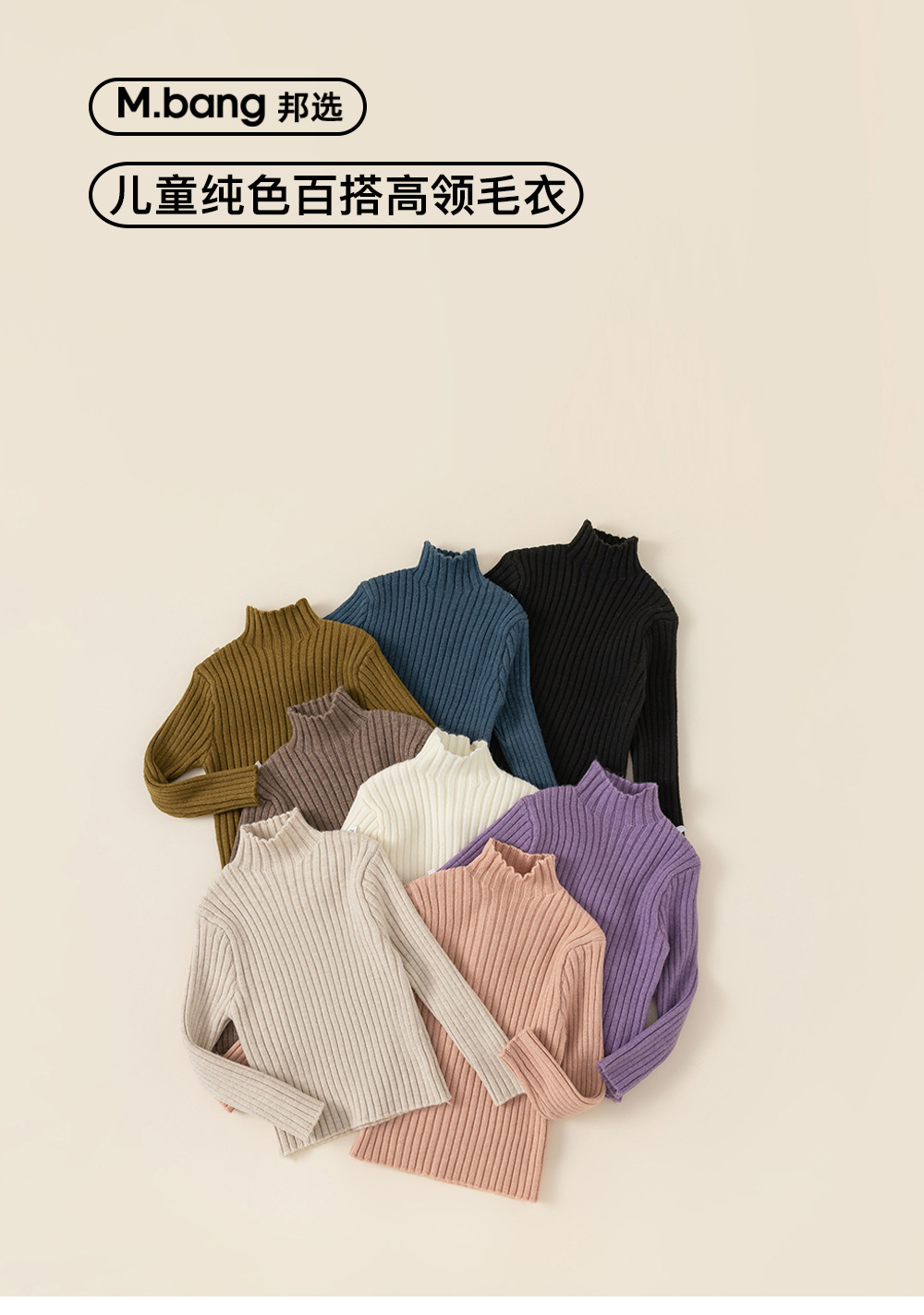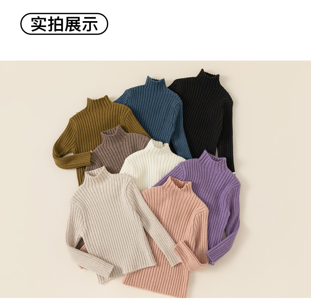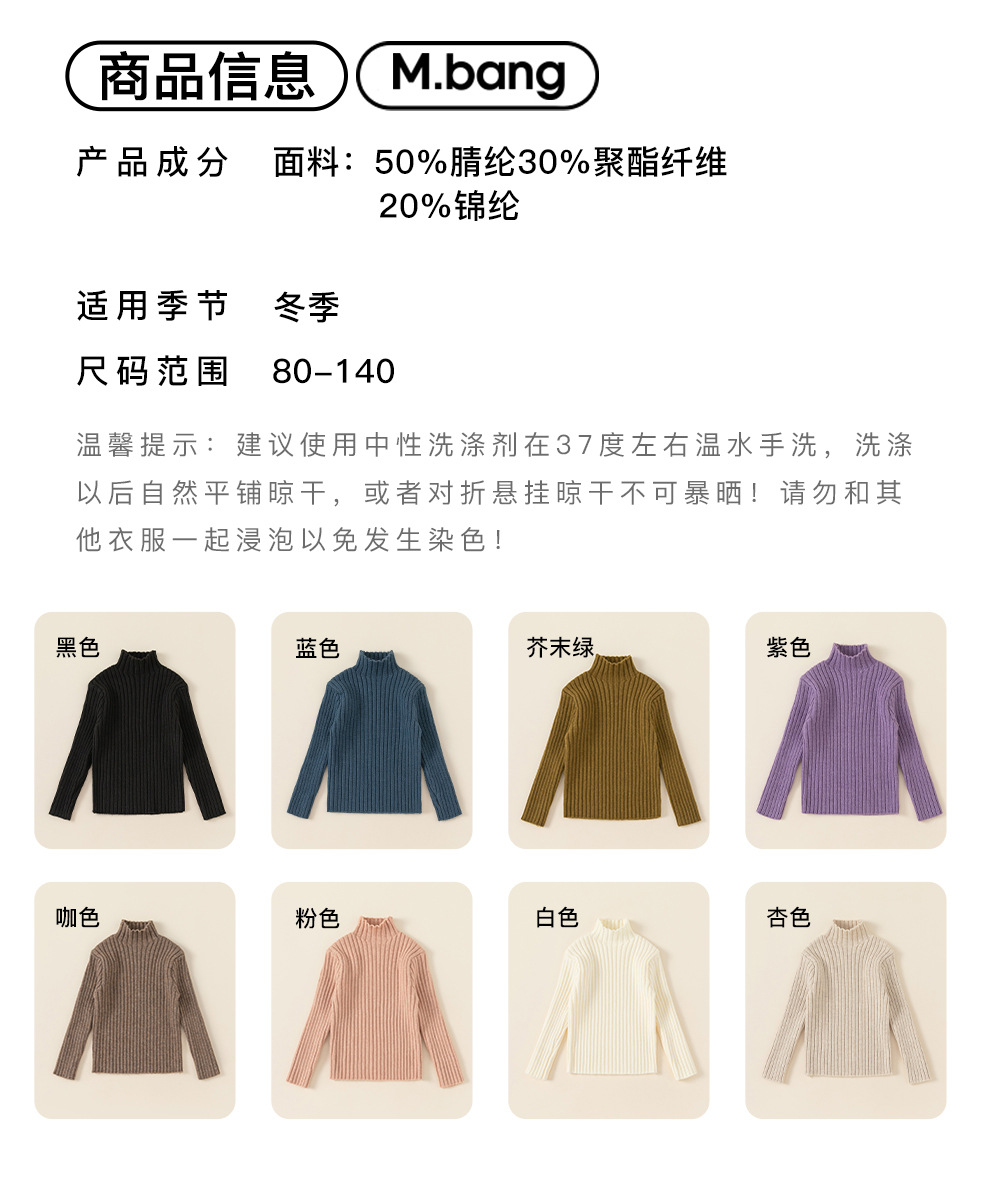 유 바오 아동복 가을과 겨울 어린이 스웨터 소년과 소녀 단색 높은 칼라 스웨터 서양식 베이스 코트 DY34418