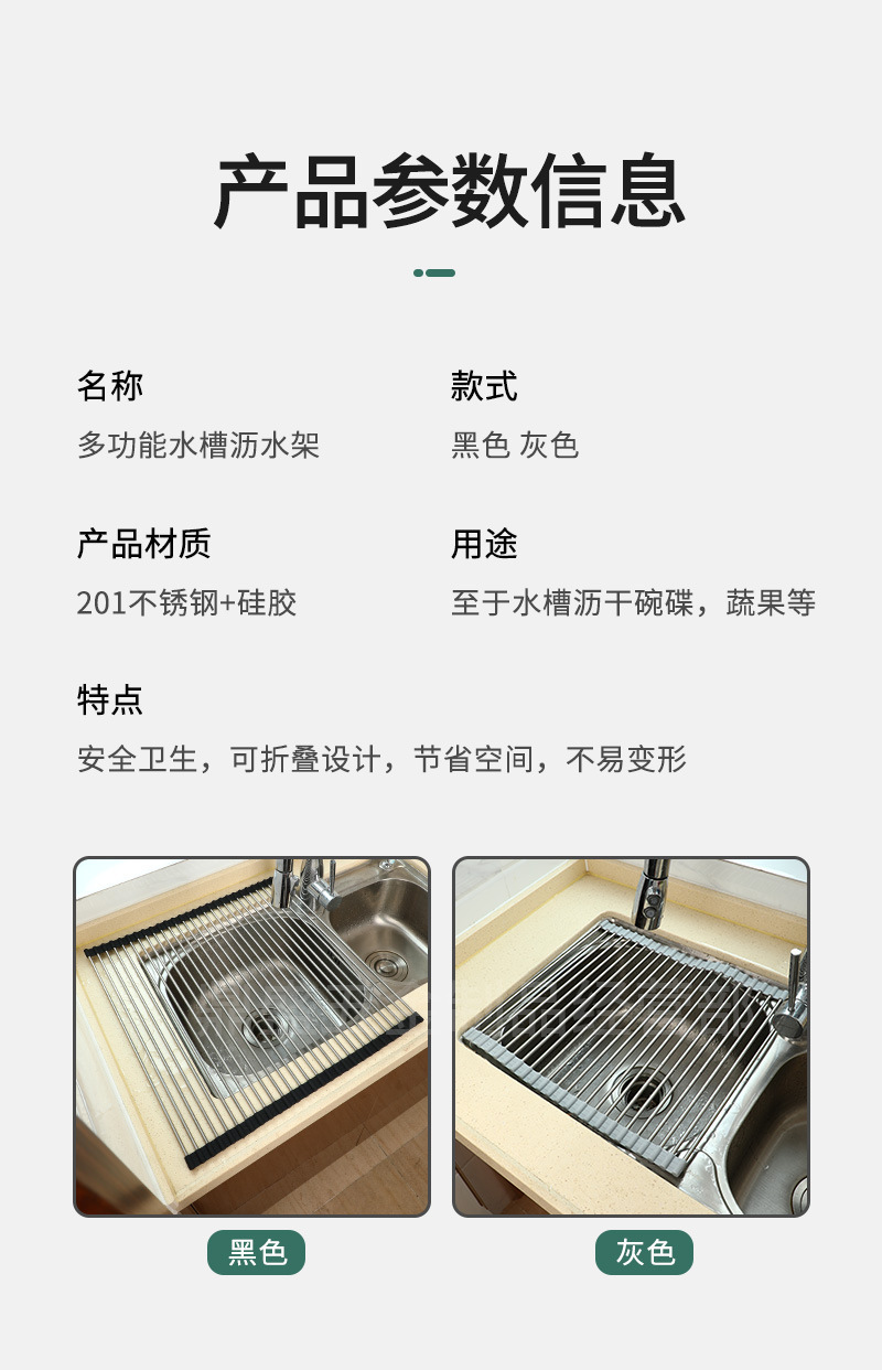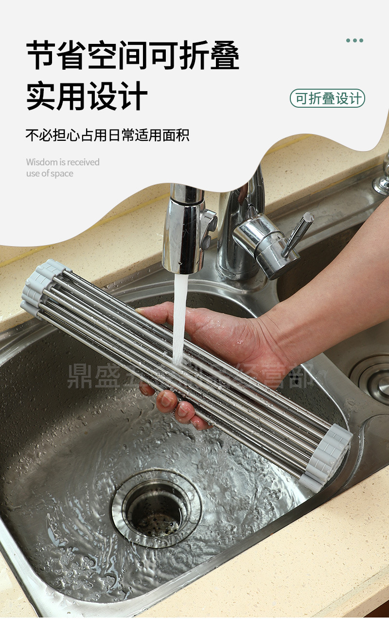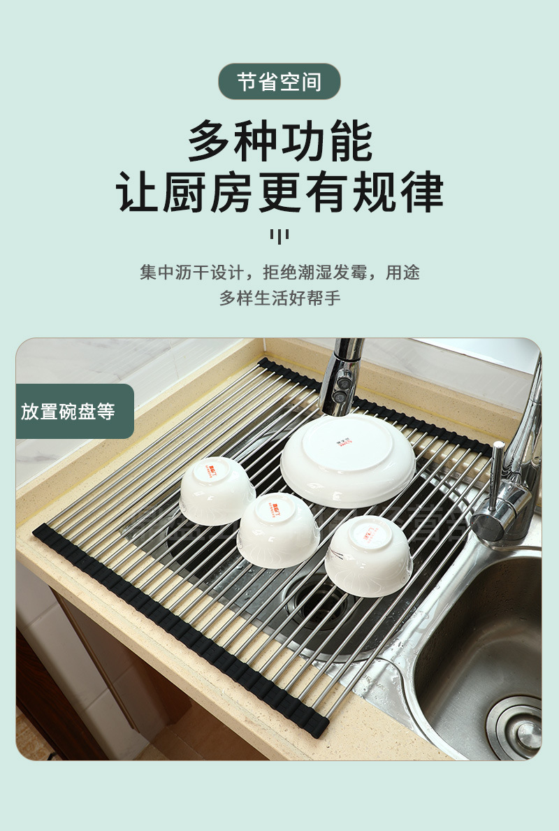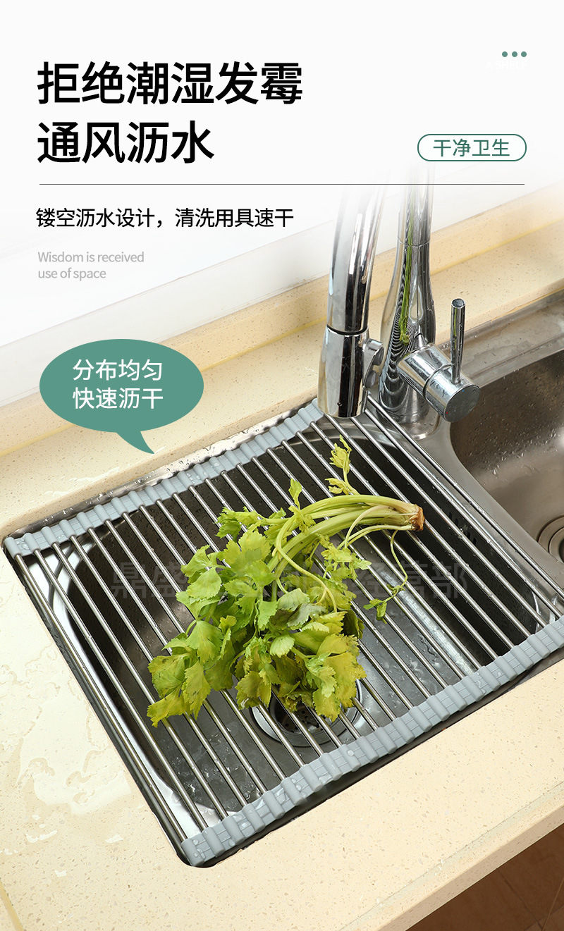 실리콘 접이식 식기 세척 및 배수 랙 스테인레스 스틸 싱크 접시 배수 제어 건조 랙 가정용 과일 및 야채 떨어지는 랙스토어 가기