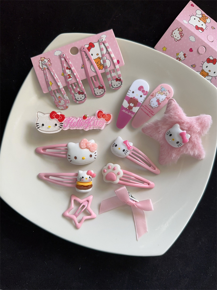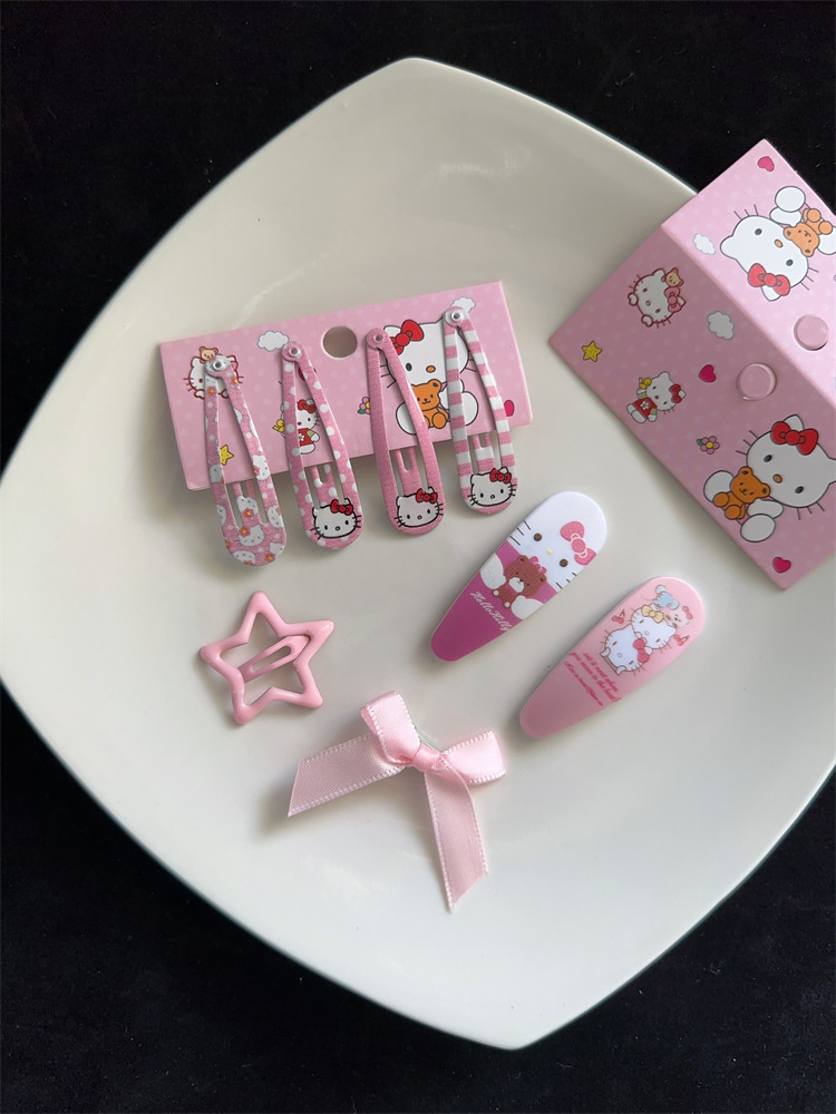 여자 친구를위한 헬로 키티 머리핀 세트 달콤한 귀여운 헬로 키티 헤어 액세서리 세트 BB 클립 앞머리 클립