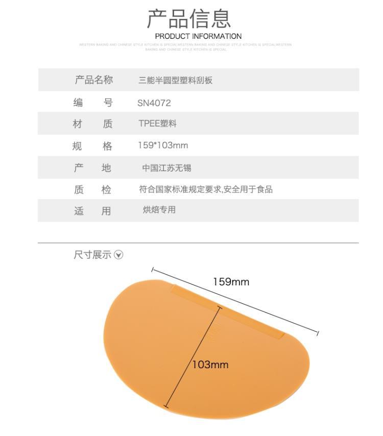 3 에너지 베이킹 스크레이퍼 반원형 플라스틱 스크레이퍼 케이크 크림 스크레이퍼 베이킹 가정용 도구 SN4072 소프트