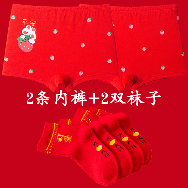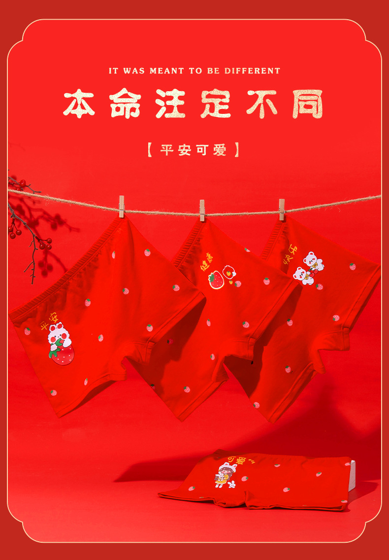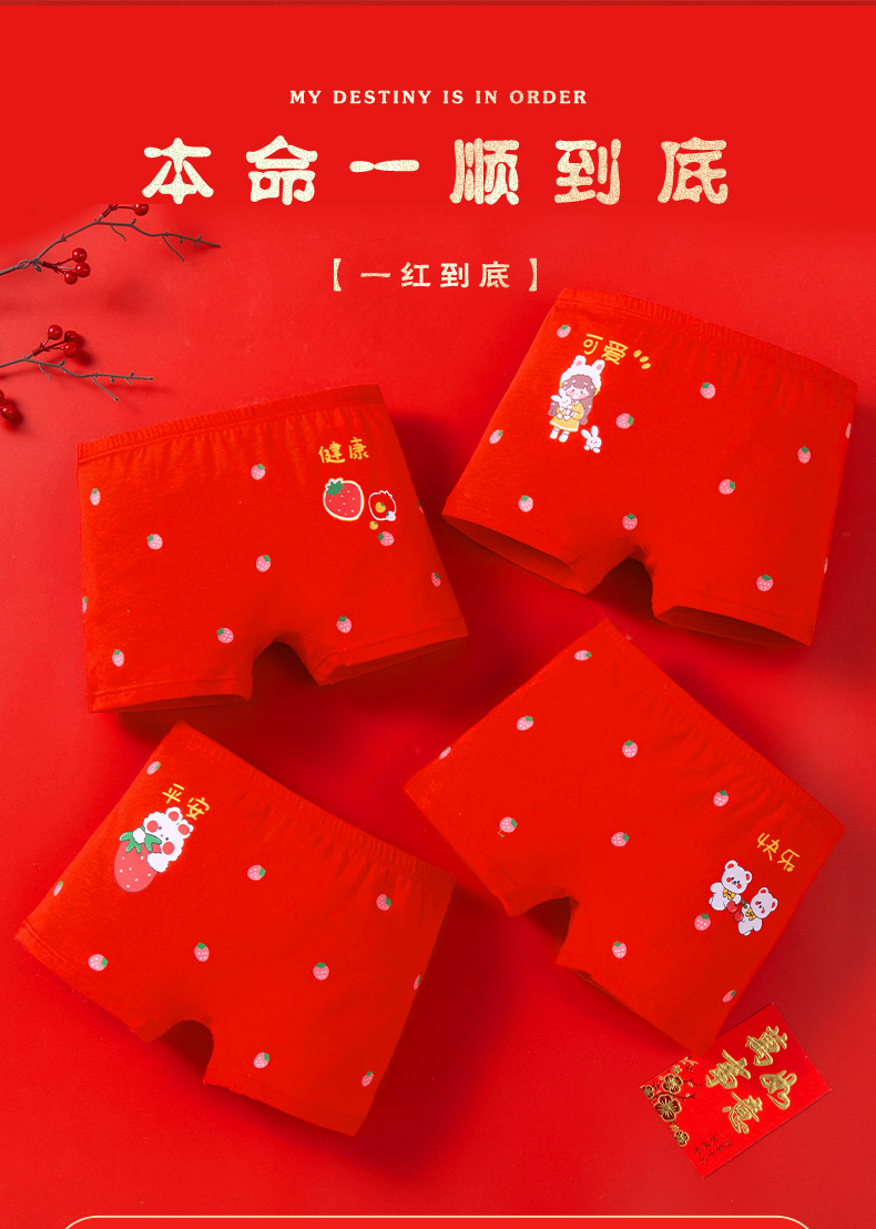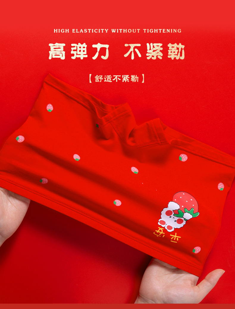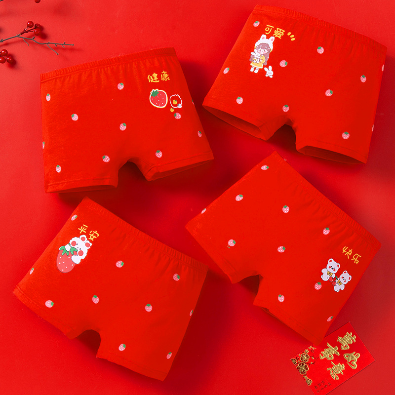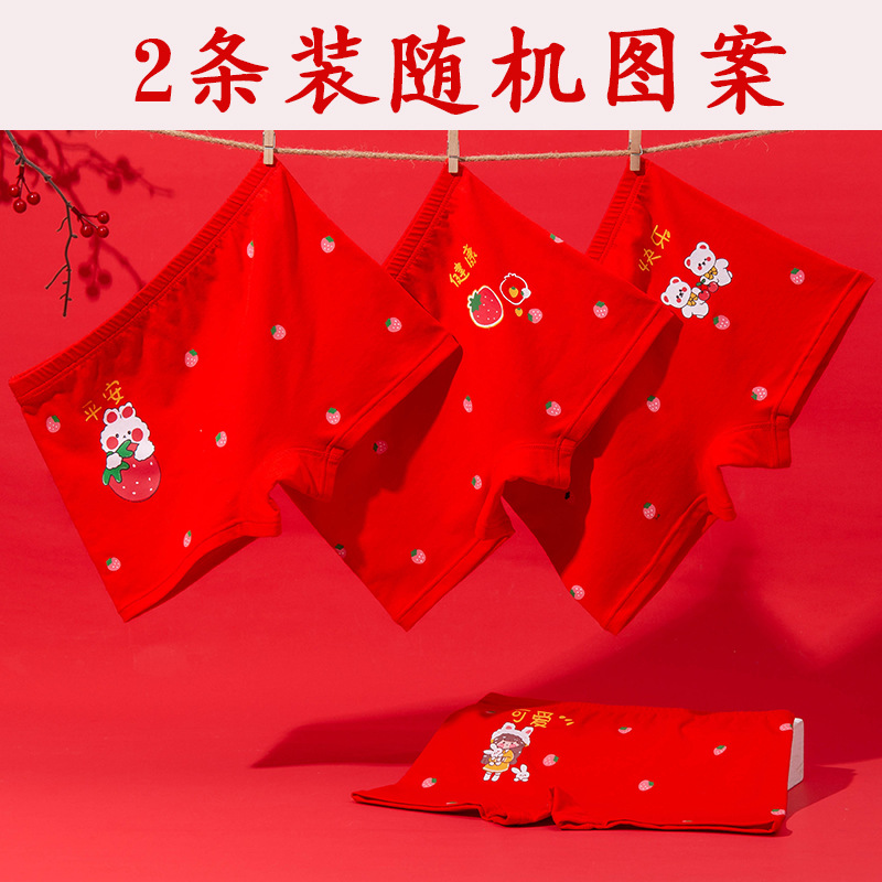 새해 가을 겨울 신상 아동 속옷 만화 귀여운 순면 중간 허리 큰 빨간색 생년월일 소녀용 사각팬티