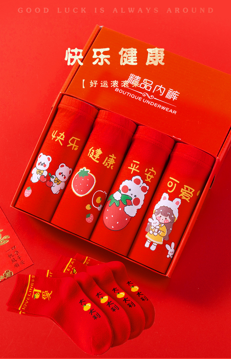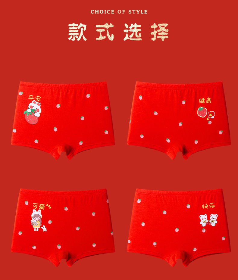 새해 가을 겨울 신상 아동 속옷 만화 귀여운 순면 중간 허리 큰 빨간색 생년월일 소녀용 사각팬티스토어 가기