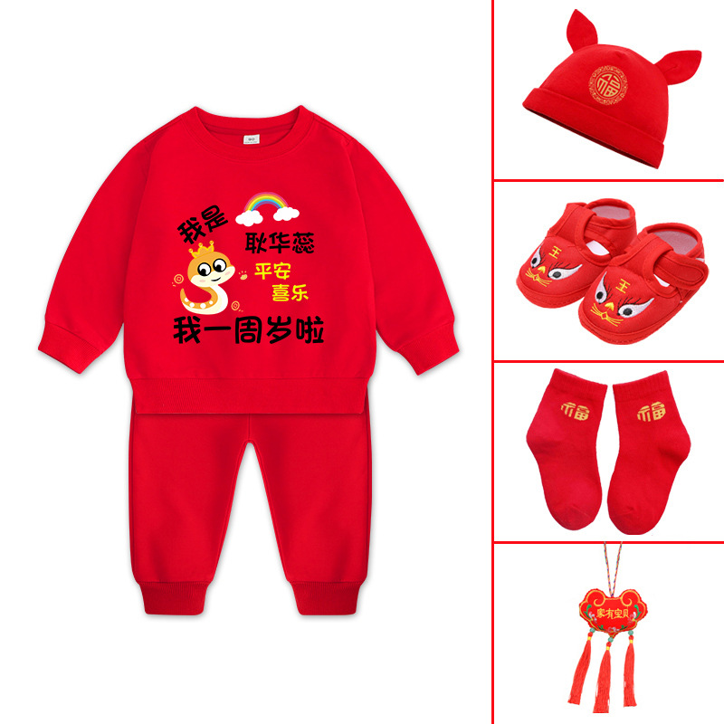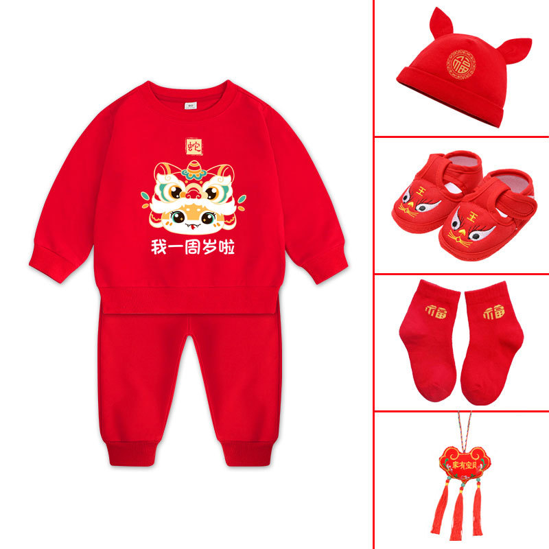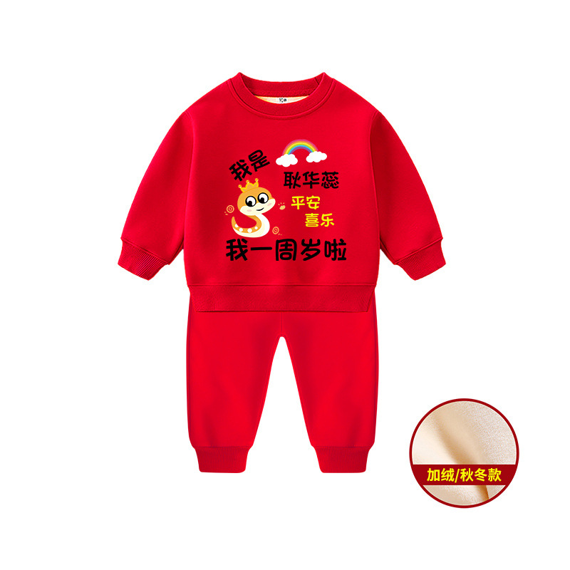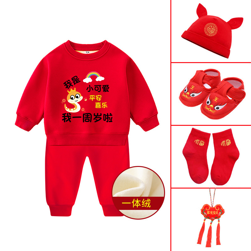 뱀돌이 아기 돌잔치 의상 남아용 플리스 세트 겨울 1세 남아옷 빨간색 여아 돌잔치 의상 2세