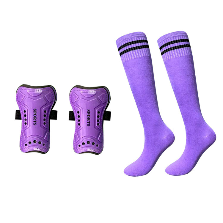 • 보라색 양말 + 두꺼운 수건 밑단이 있는 정강이 보호대