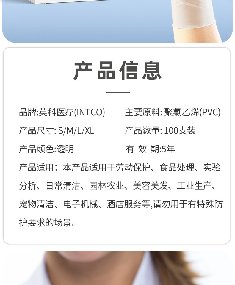잉케 의료용 일회용 의료용 PVC 검진용 장갑, 의사용 내마모성 작업용 특수 보호 장갑 도매스토어 가기