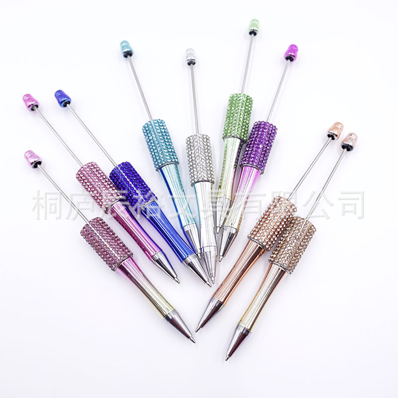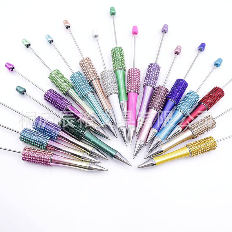 고급스럽고 트렌디한 그라데이션 컬러의 귀여운 회전 볼펜, 창의적인 DIY 다이아몬드 비드 전기 도금 펜 홀더 젤 펜스토어 가기
