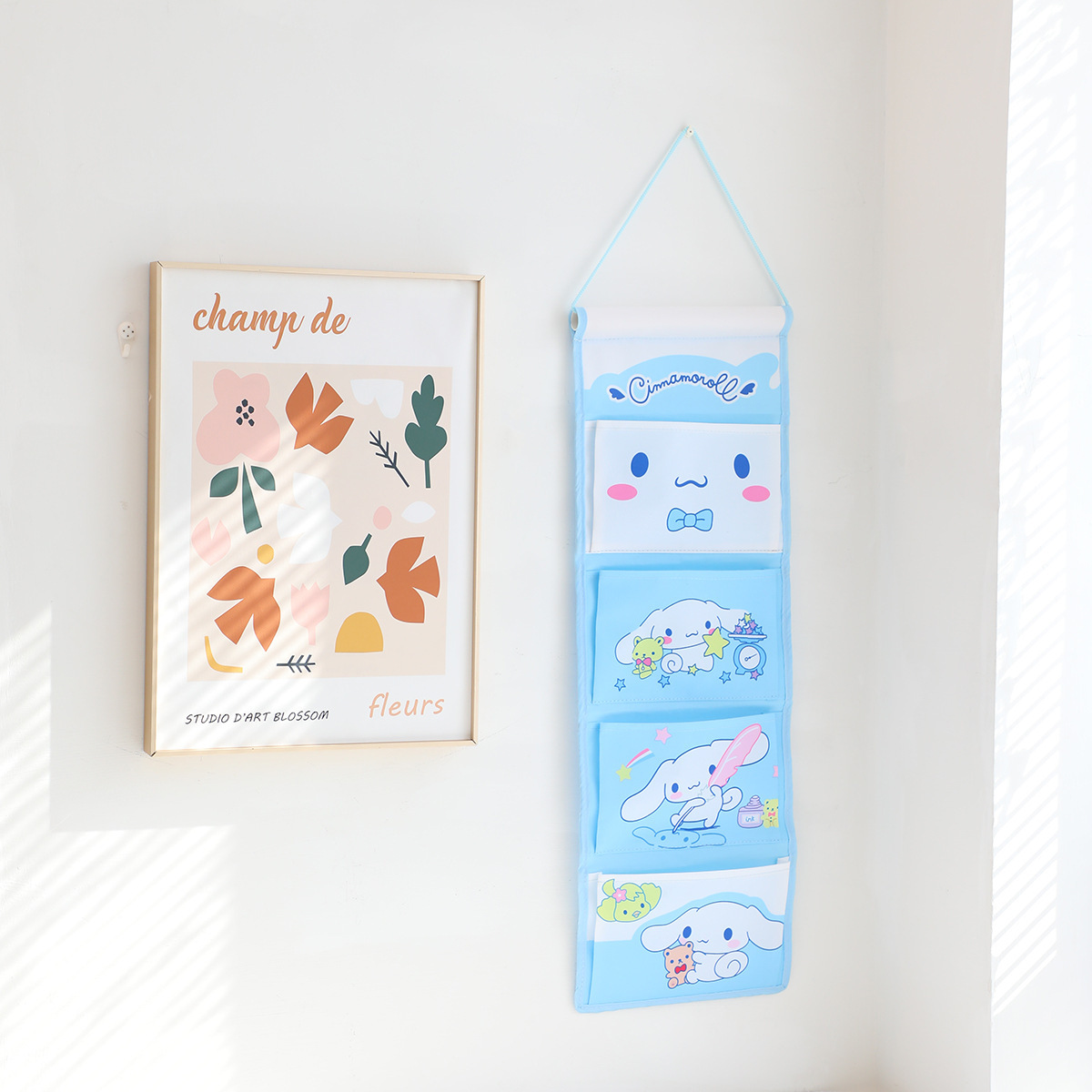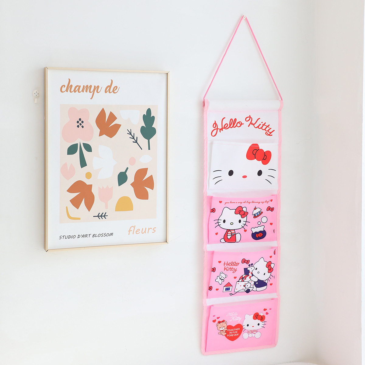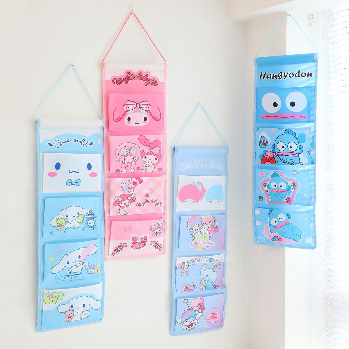 귀여운 만화 긴 4 칸 주방 문 벽걸이 형 보관 가방 면과 린넨 물고기 이상한 발코니 교수형 보관 가방