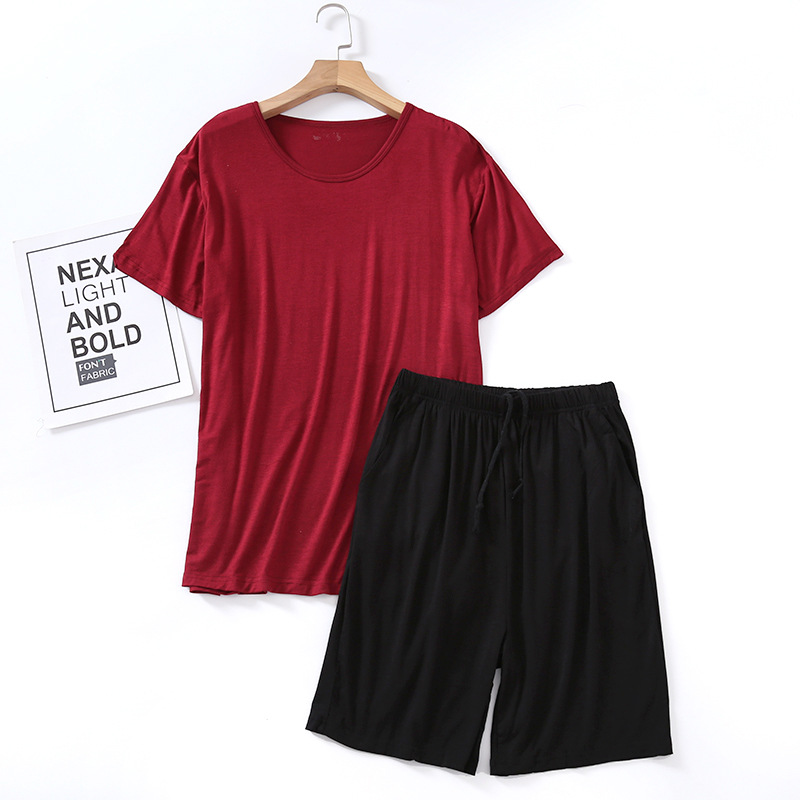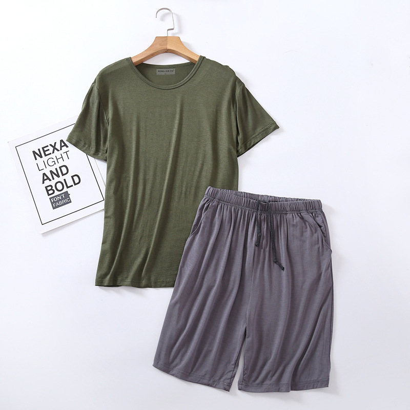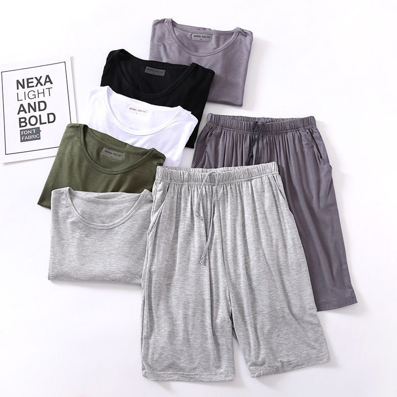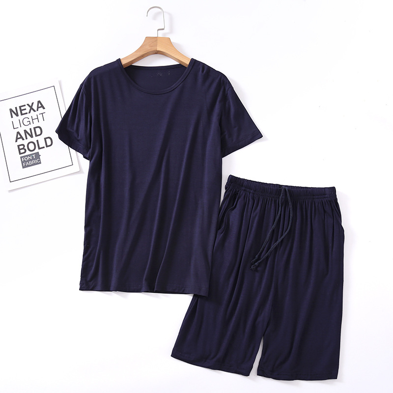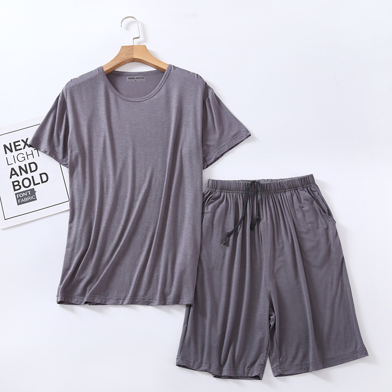 모달 잠옷 남자의 여름 라운드 넥 짧은 소매 반바지 느슨한 캐주얼 플러스 사이즈 봄과 여름 가정 의류 잠옷 세트스토어 가기