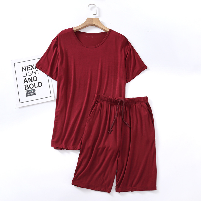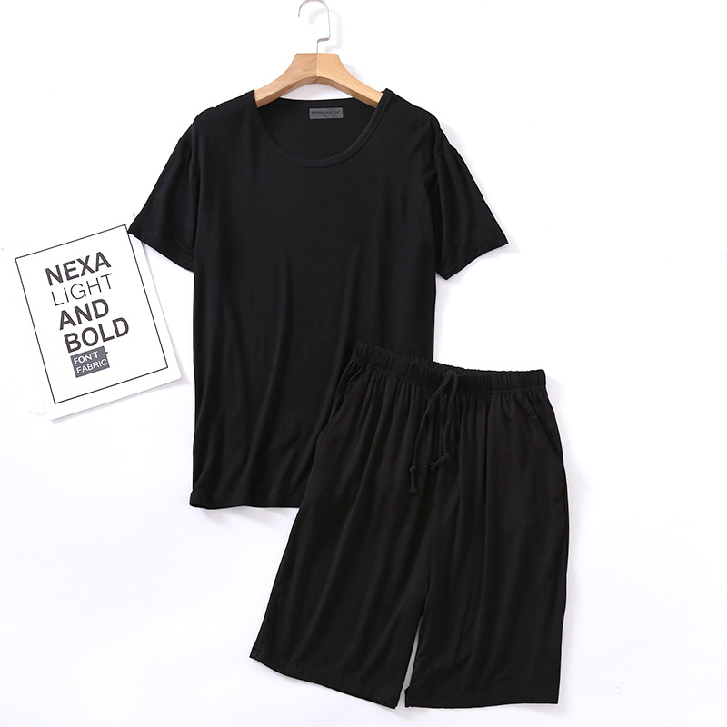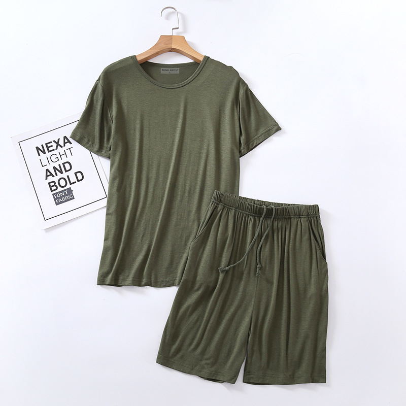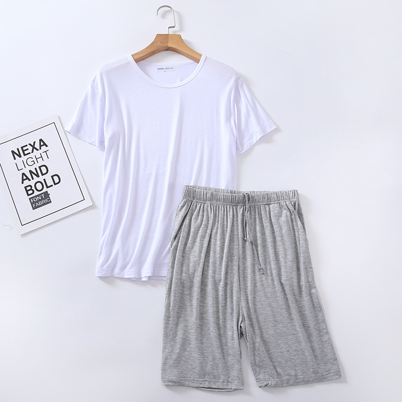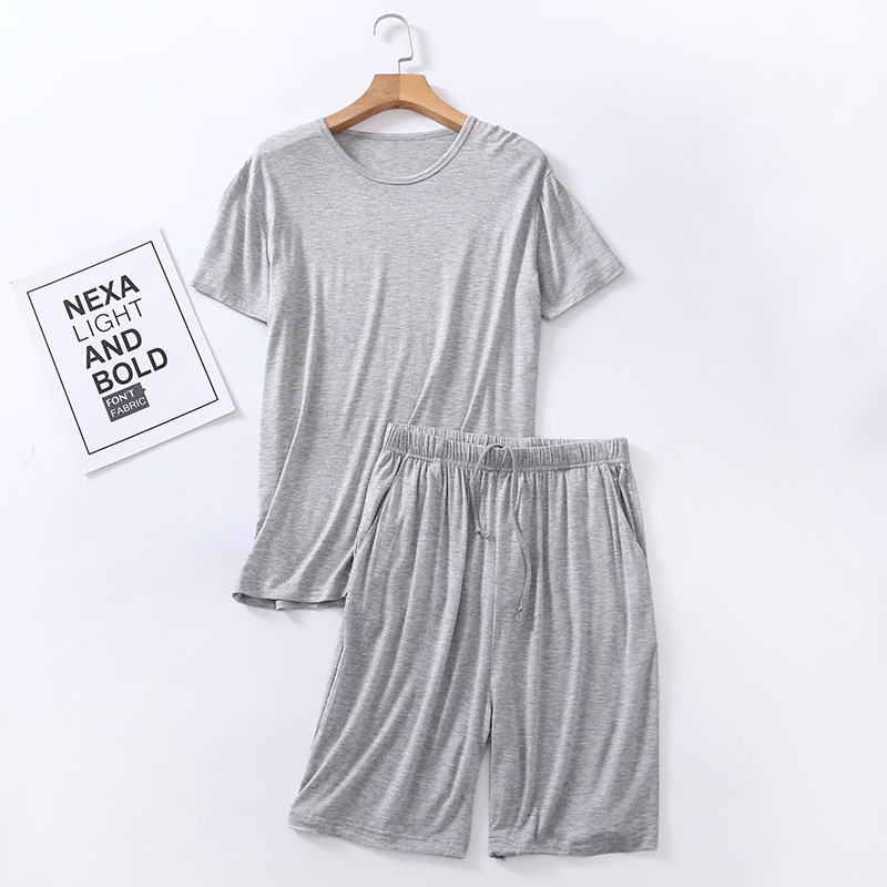 모달 잠옷 남자의 여름 라운드 넥 짧은 소매 반바지 느슨한 캐주얼 플러스 사이즈 봄과 여름 가정 의류 잠옷 세트스토어 가기