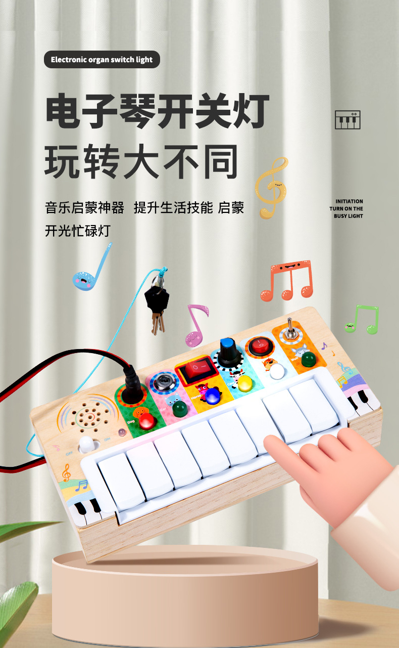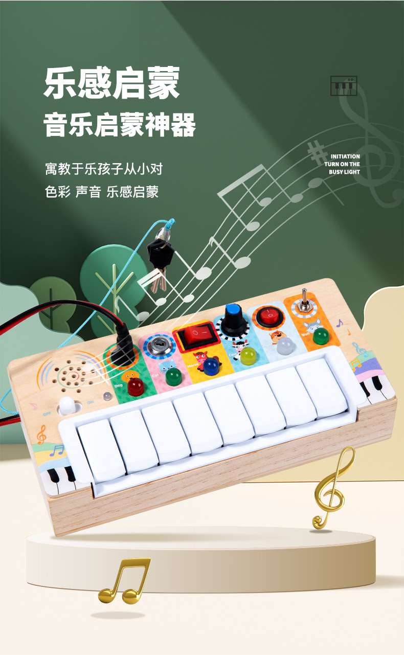 어린이 시뮬레이션 스위치 소켓 LED 회로 기판 몬테소리 조기 교육 시뮬레이션 키 전자 오르간 바쁜 목제 장난감