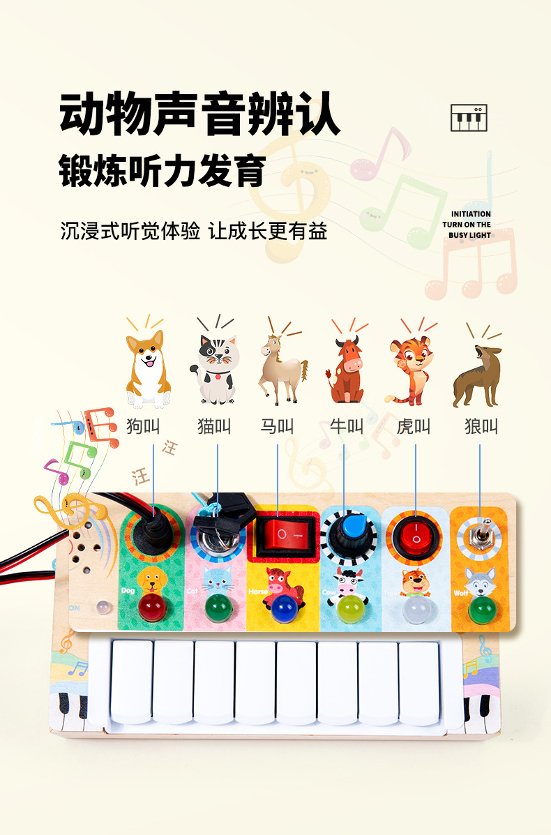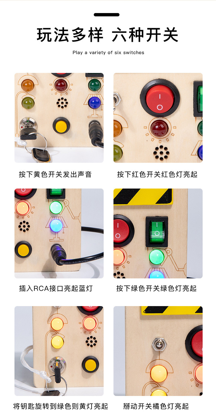 어린이 시뮬레이션 스위치 소켓 LED 회로 기판 몬테소리 조기 교육 시뮬레이션 키 전자 오르간 바쁜 목제 장난감스토어 가기
