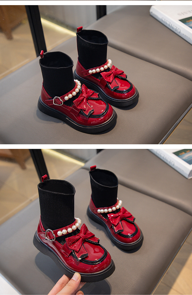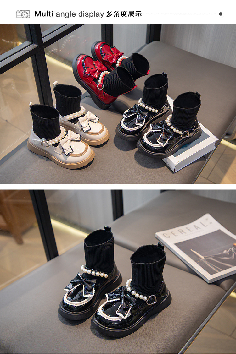 여자 작은 가죽 신발 2023 새로운 짧은 부츠 어린이 신발 가을과 겨울 마틴 부츠 여자 공주 캐주얼 양말 부츠 유행스토어 가기