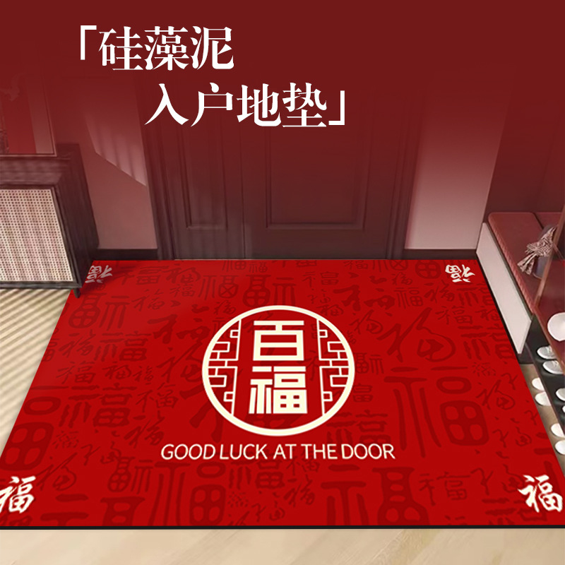 레드 축제 부드러운 규조 진흙 흡수 매트 새로운 중국 스타일 홈 입구 문 매트 홈 입구 미끄럼 방지 바닥 매트스토어 가기