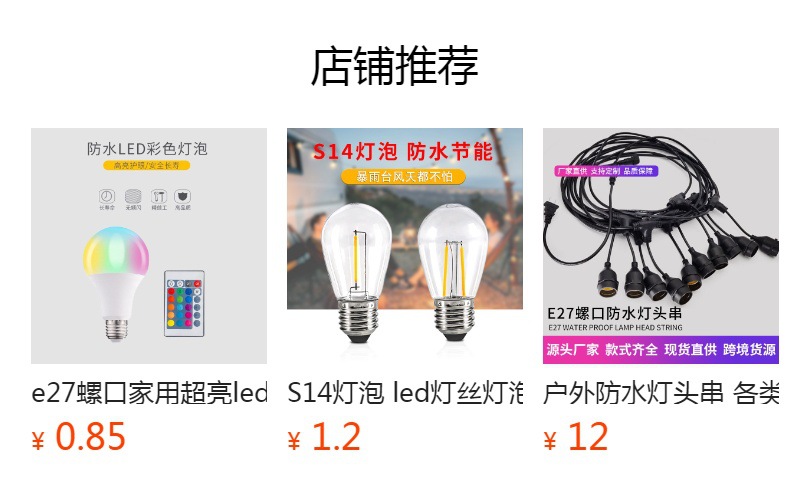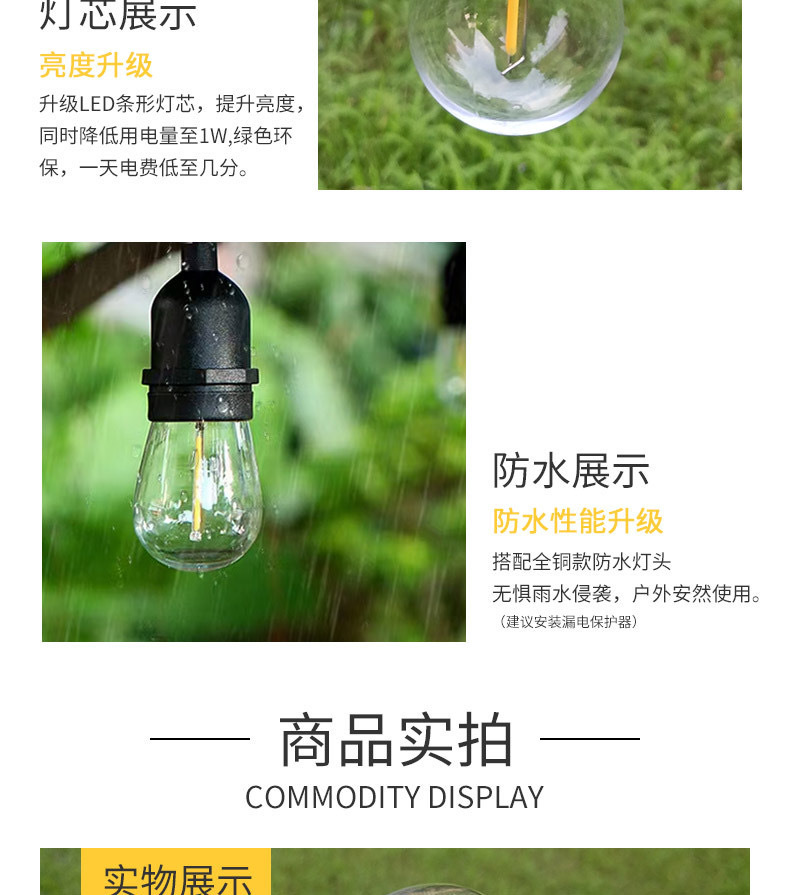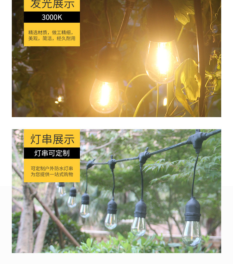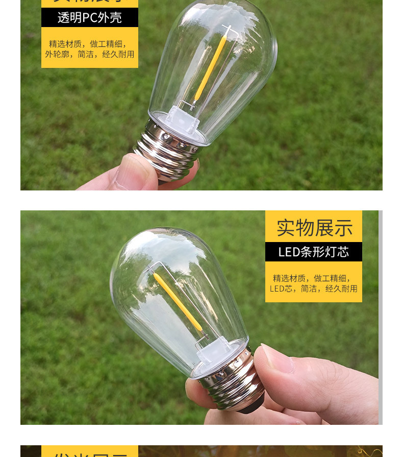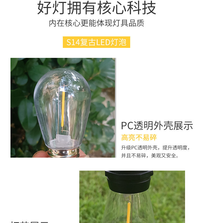 S14 전구 led 필라멘트 전구 야외 캠핑 방수 전구 E27 나사 1W 전구 220V 전구스토어 가기