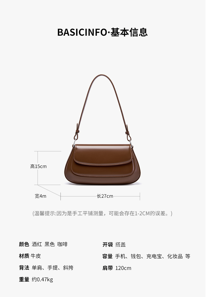정품 가죽 겨드랑이 가방 2025 새로운 다목적 고급 감각 숄더백 패션 안장 가방 메신저 백