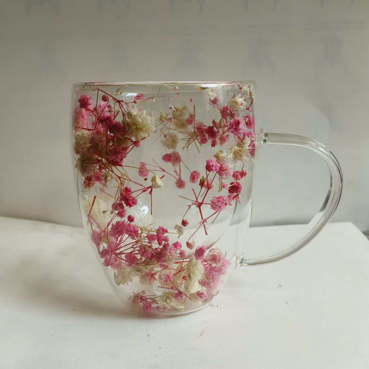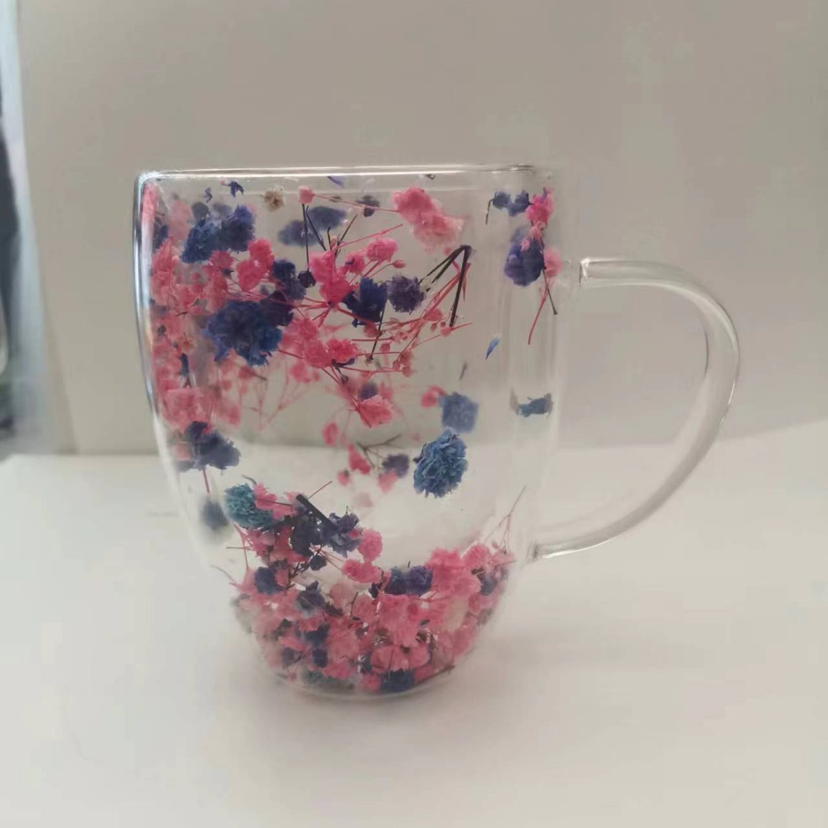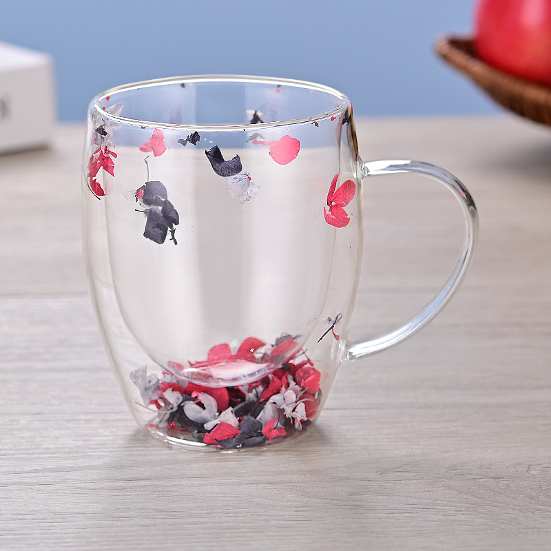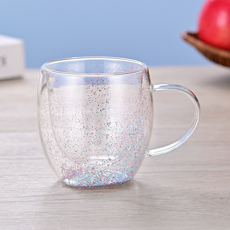크로스보더 이중 유리 유동 모래 드라이플라워 컵 고붕규산 유리 이중컵 우유 커피컵 가정용 음료컵