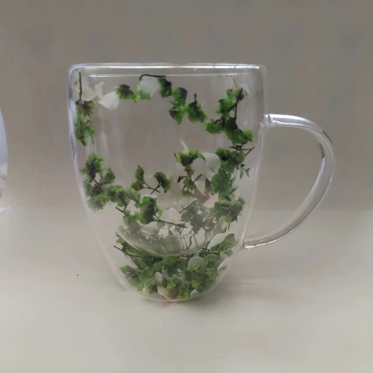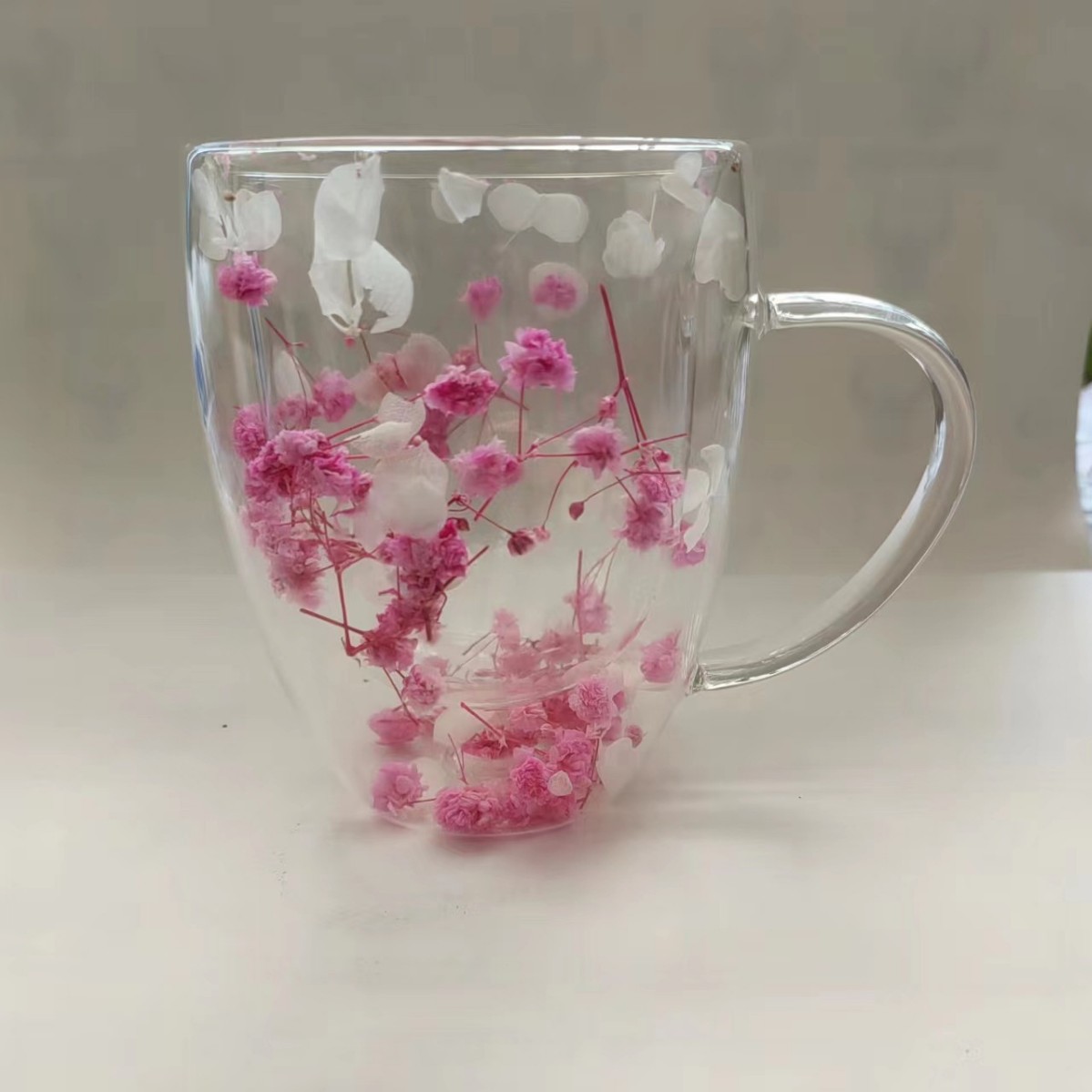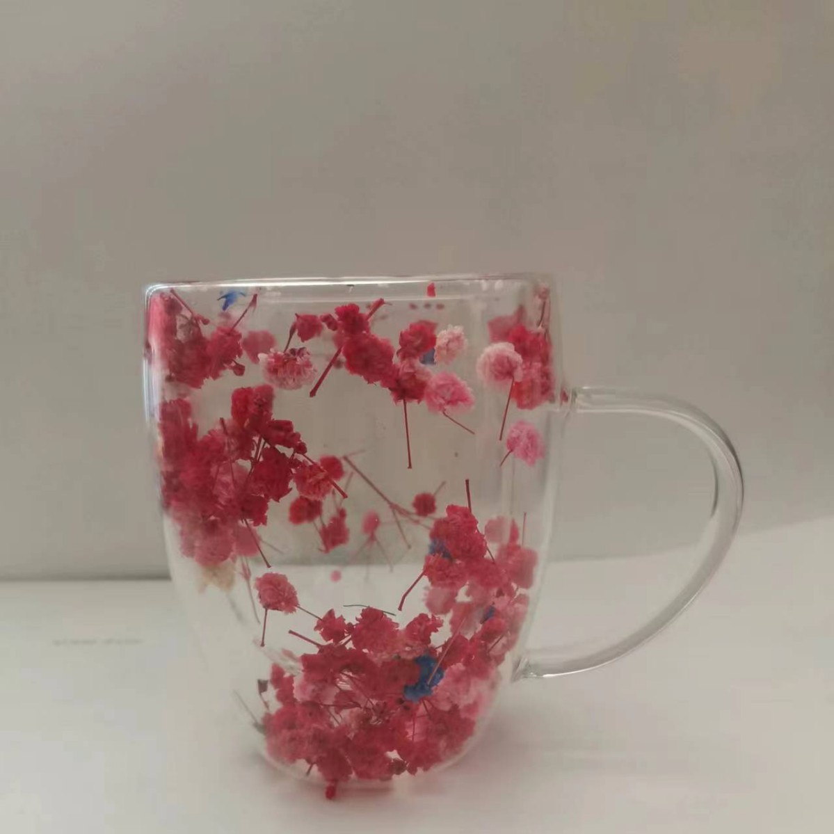 크로스보더 이중 유리 유동 모래 드라이플라워 컵 고붕규산 유리 이중컵 우유 커피컵 가정용 음료컵