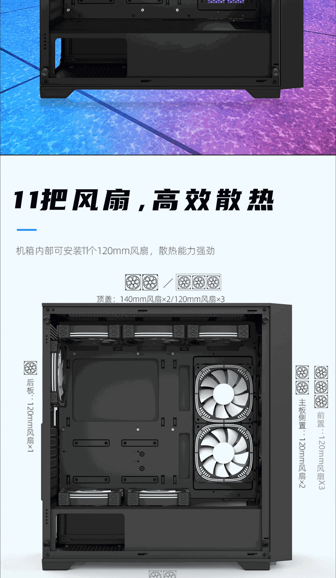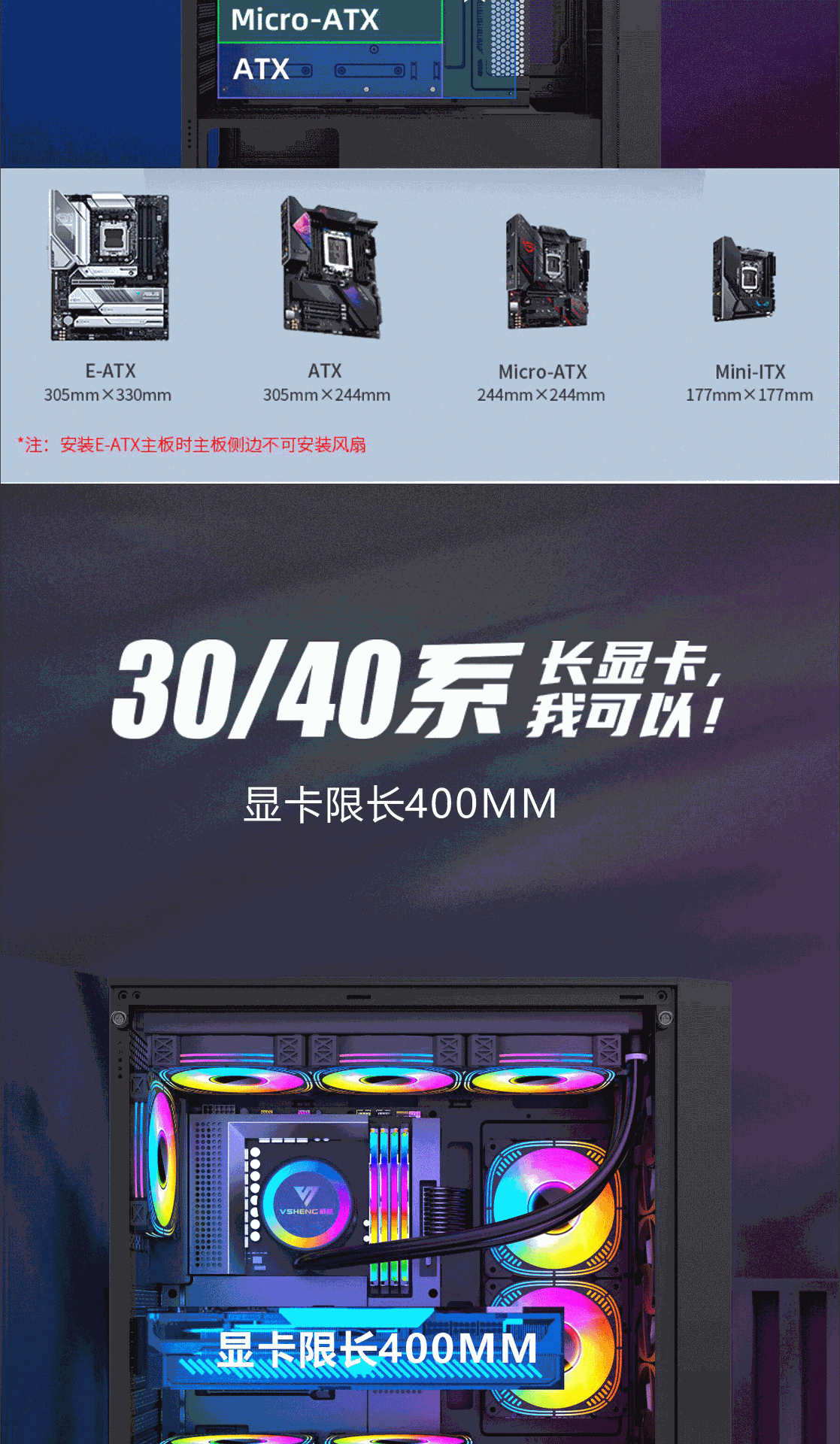 VSHENG wesheng 스타 데스크탑 컴퓨터 섀시 측면 투명 지원 수냉식 EATX