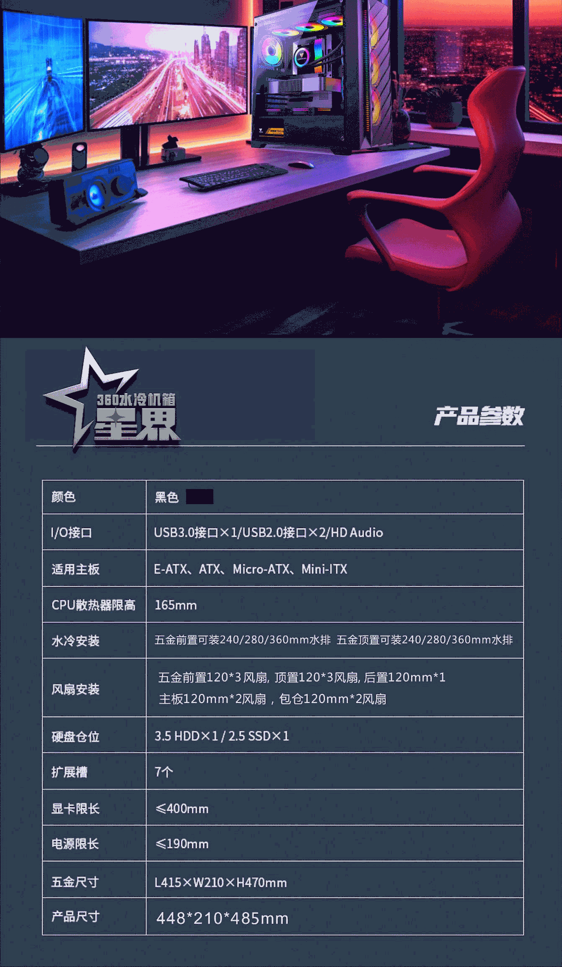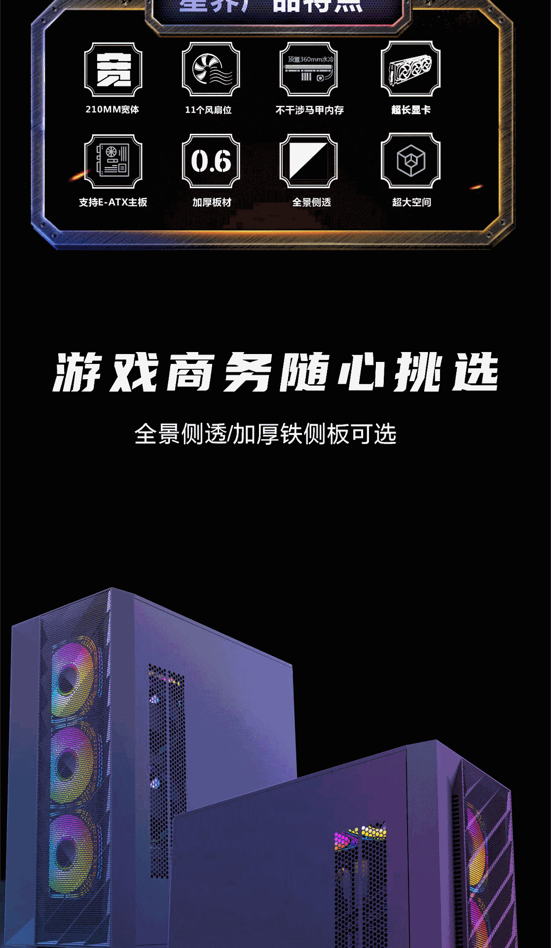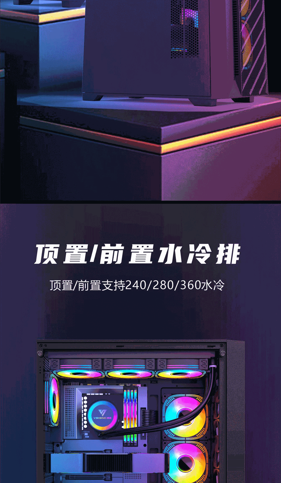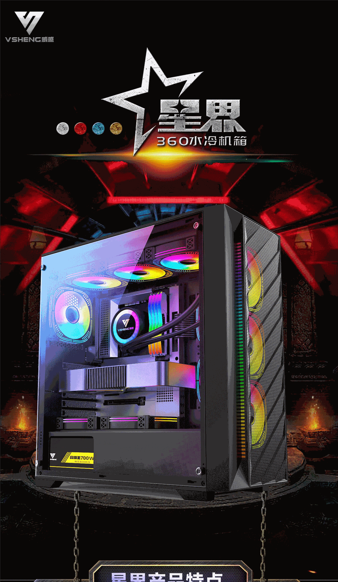 VSHENG wesheng 스타 데스크탑 컴퓨터 섀시 측면 투명 지원 수냉식 EATX스토어 가기