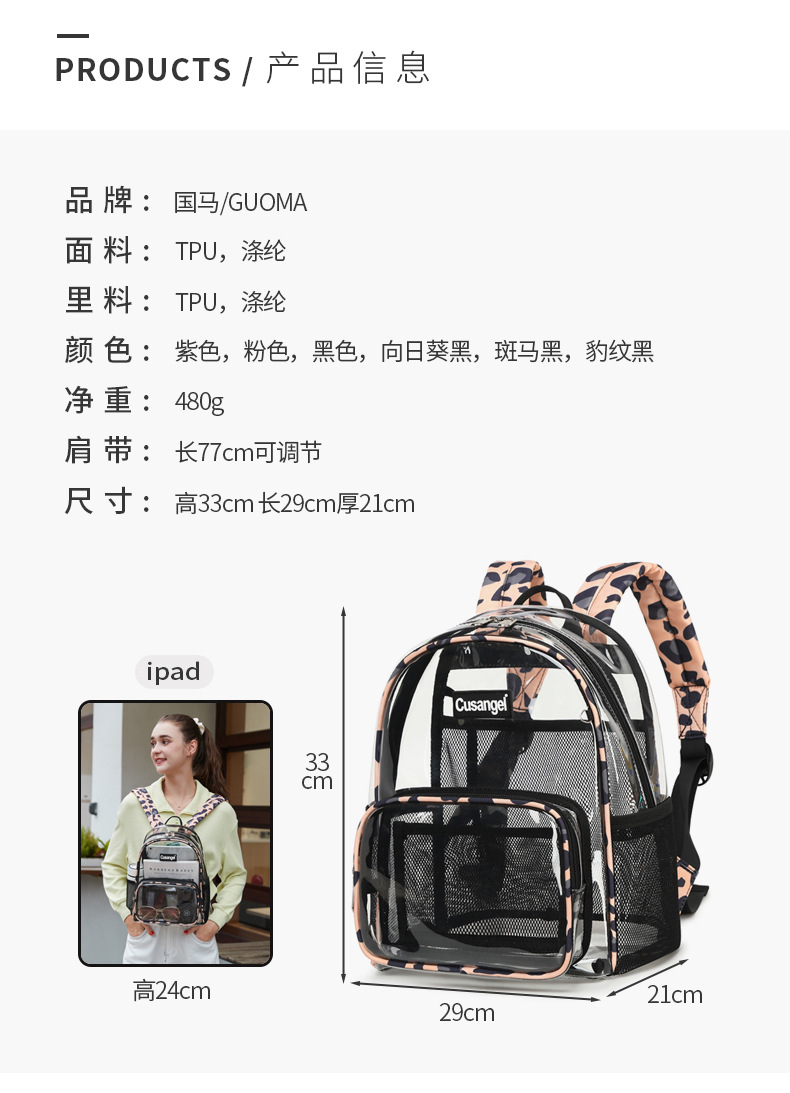 대용량 투명 여성용 배낭 해외 무역 새로운 패션 젤리 배낭 방수 TPU 간단한 학생 책가방