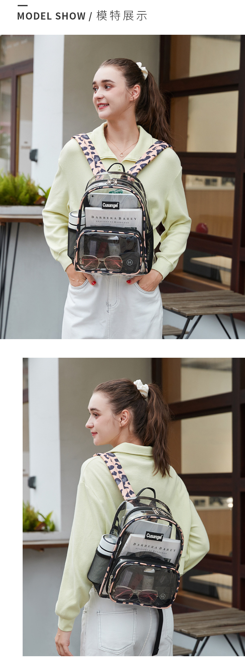 대용량 투명 여성용 배낭 해외 무역 새로운 패션 젤리 배낭 방수 TPU 간단한 학생 책가방스토어 가기