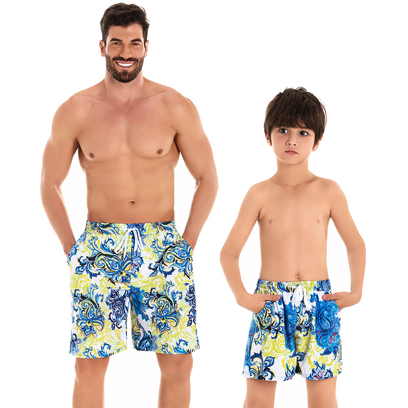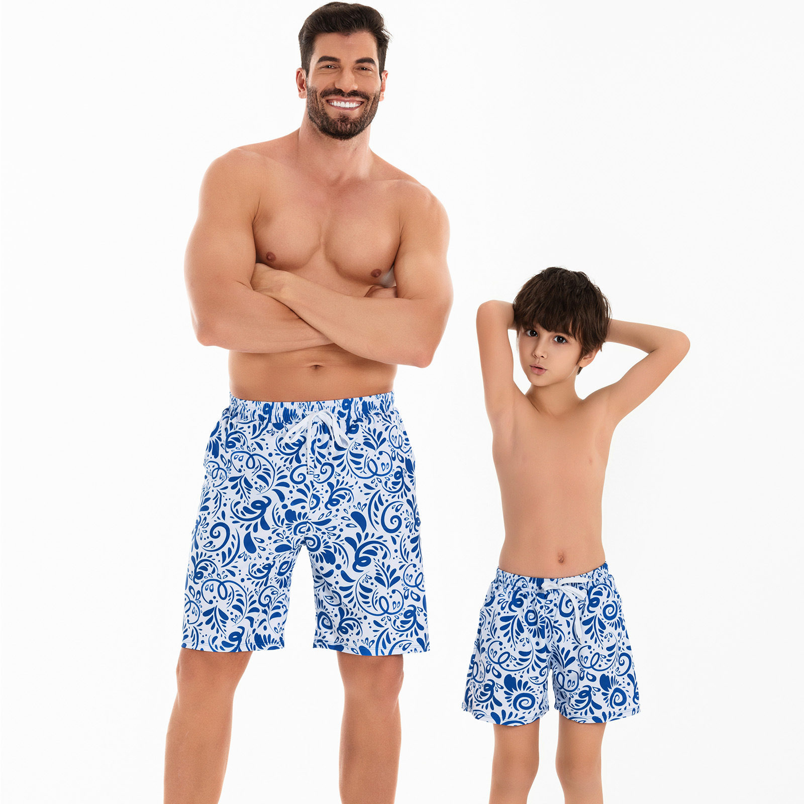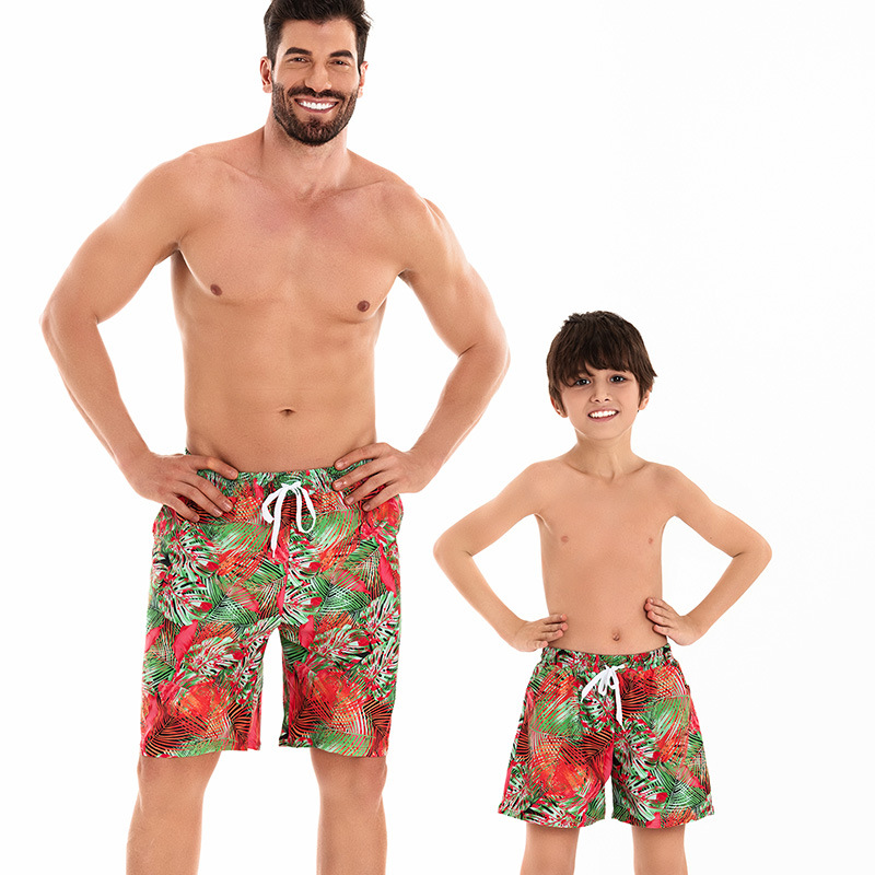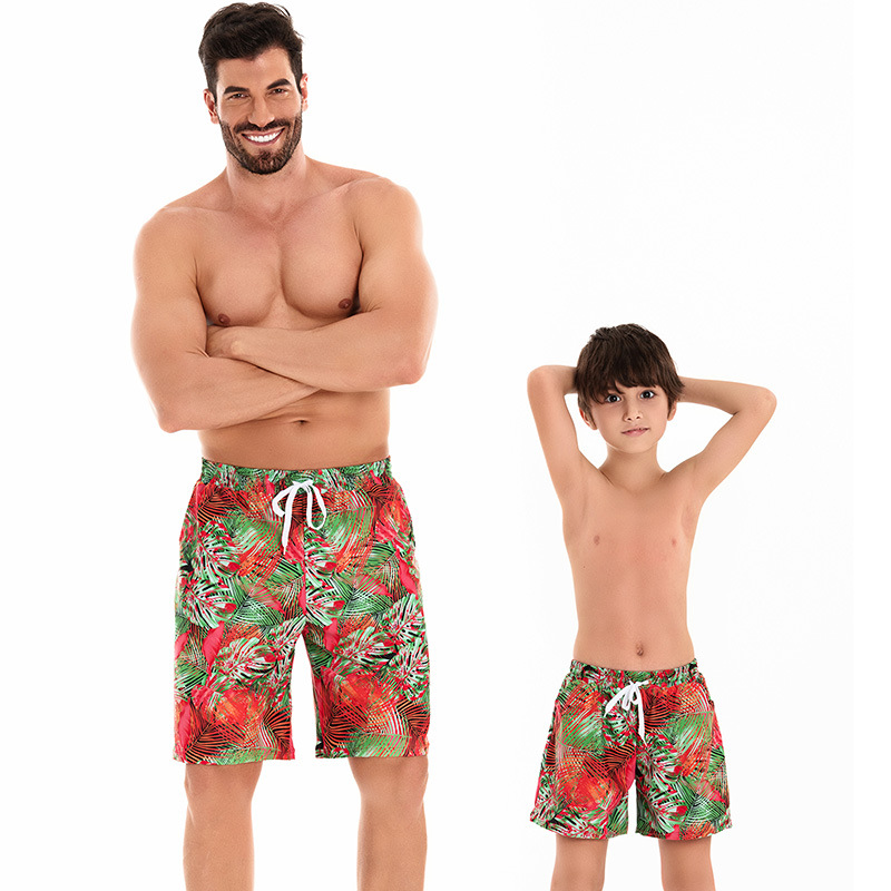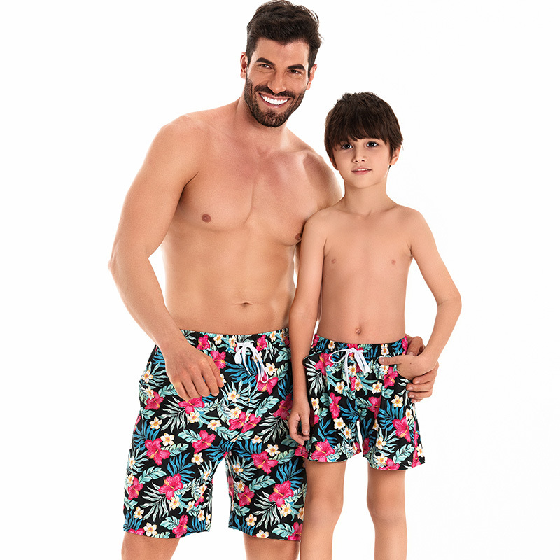 유럽과 미국 가족 원피스 비치 바지 소년 수영복에 대 한 주머니와 남자를위한 아버지와 아들 수영 트렁크를위한 새로운 2024 주름 허리