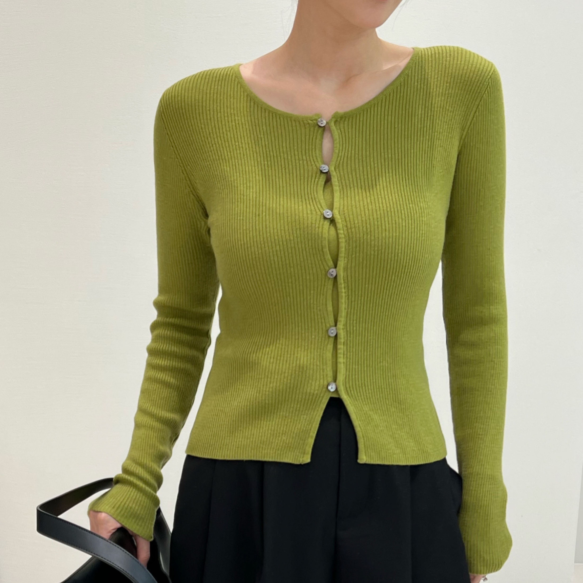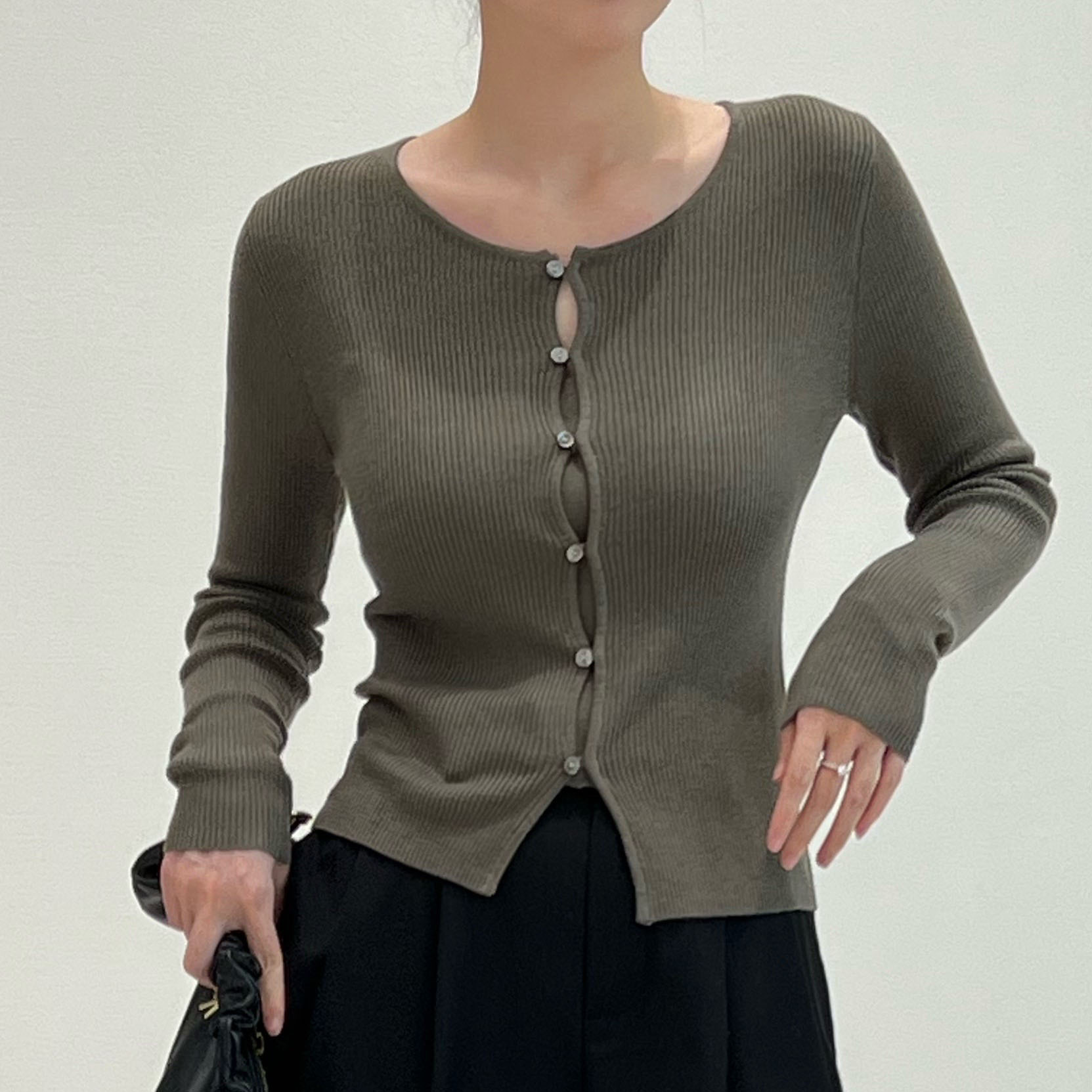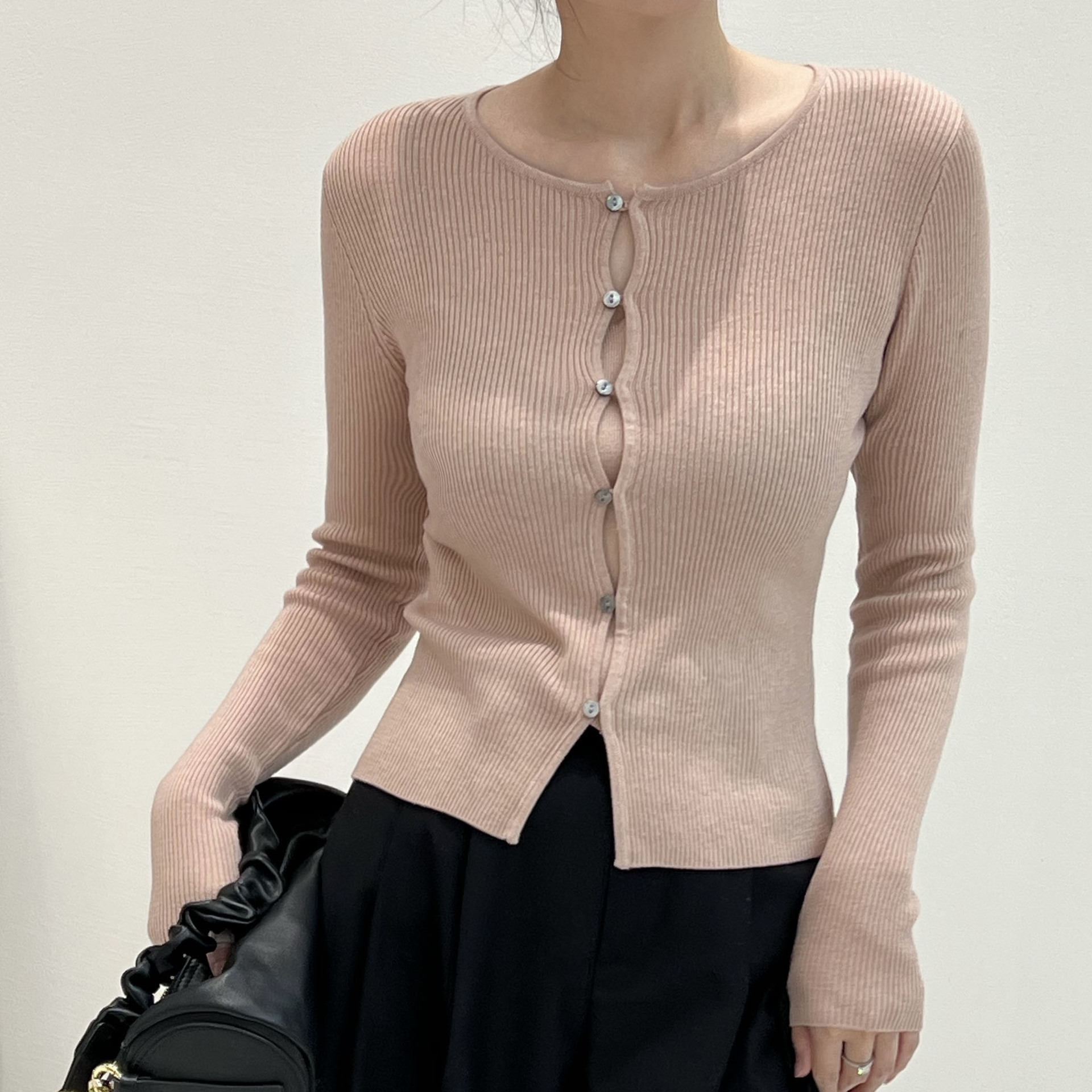 여성용 틈새 부드러운 디자인 니트 가디건 2025 가을 겨울 스타일 쉘 버튼 핏 스트라이프 슬리밍 이너웨어 탑스토어 가기