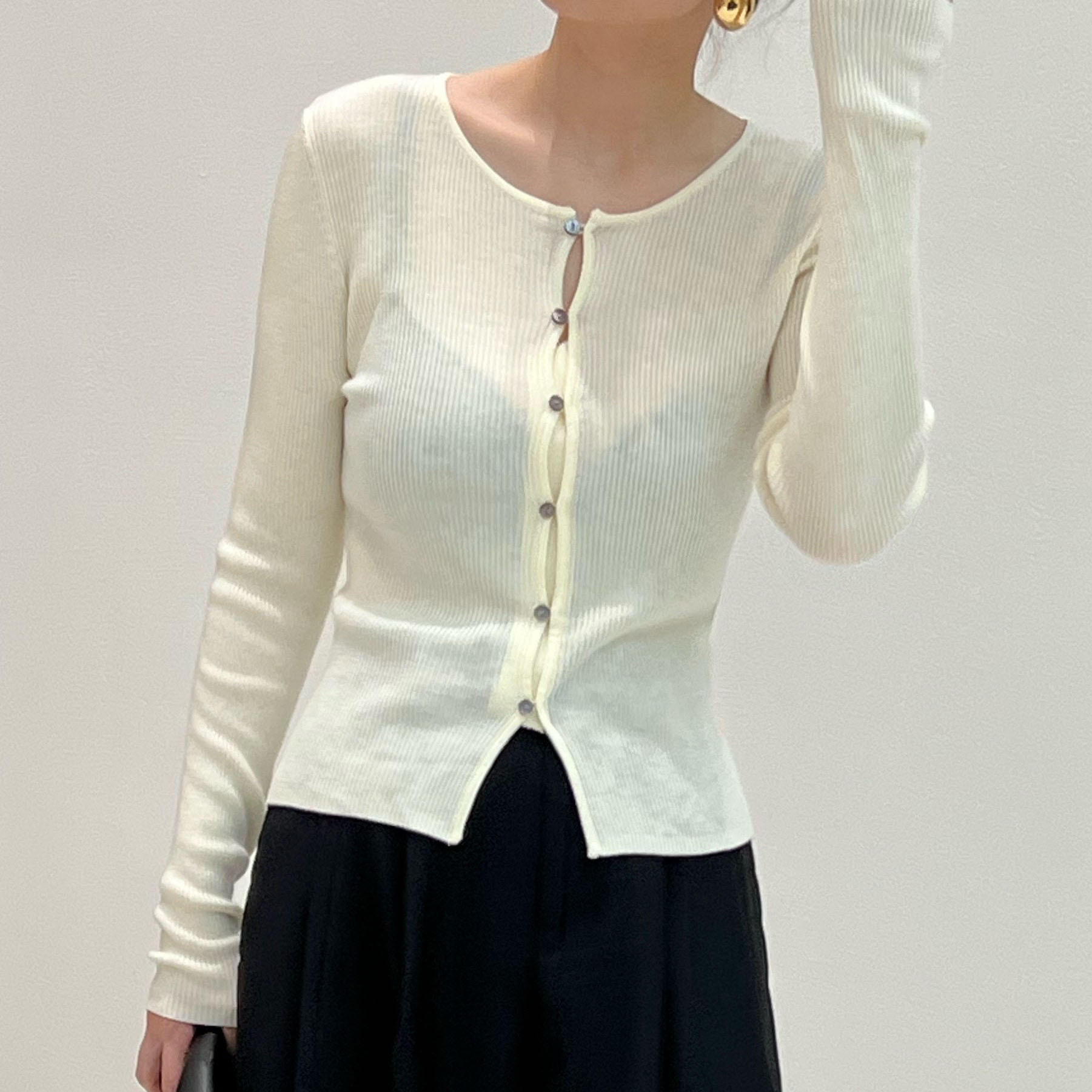 여성용 틈새 부드러운 디자인 니트 가디건 2025 가을 겨울 스타일 쉘 버튼 핏 스트라이프 슬리밍 이너웨어 탑