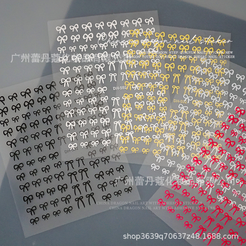 뜨거운 네일 아트 스티커 만화 미니 활 소녀의 심장 흑백 골드와 접착 3D 네일 데칼 실버스토어 가기