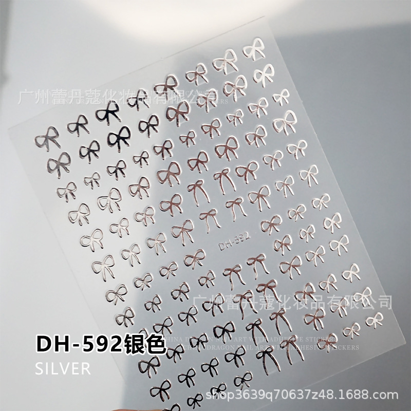 뜨거운 네일 아트 스티커 만화 미니 활 소녀의 심장 흑백 골드와 접착 3D 네일 데칼 실버