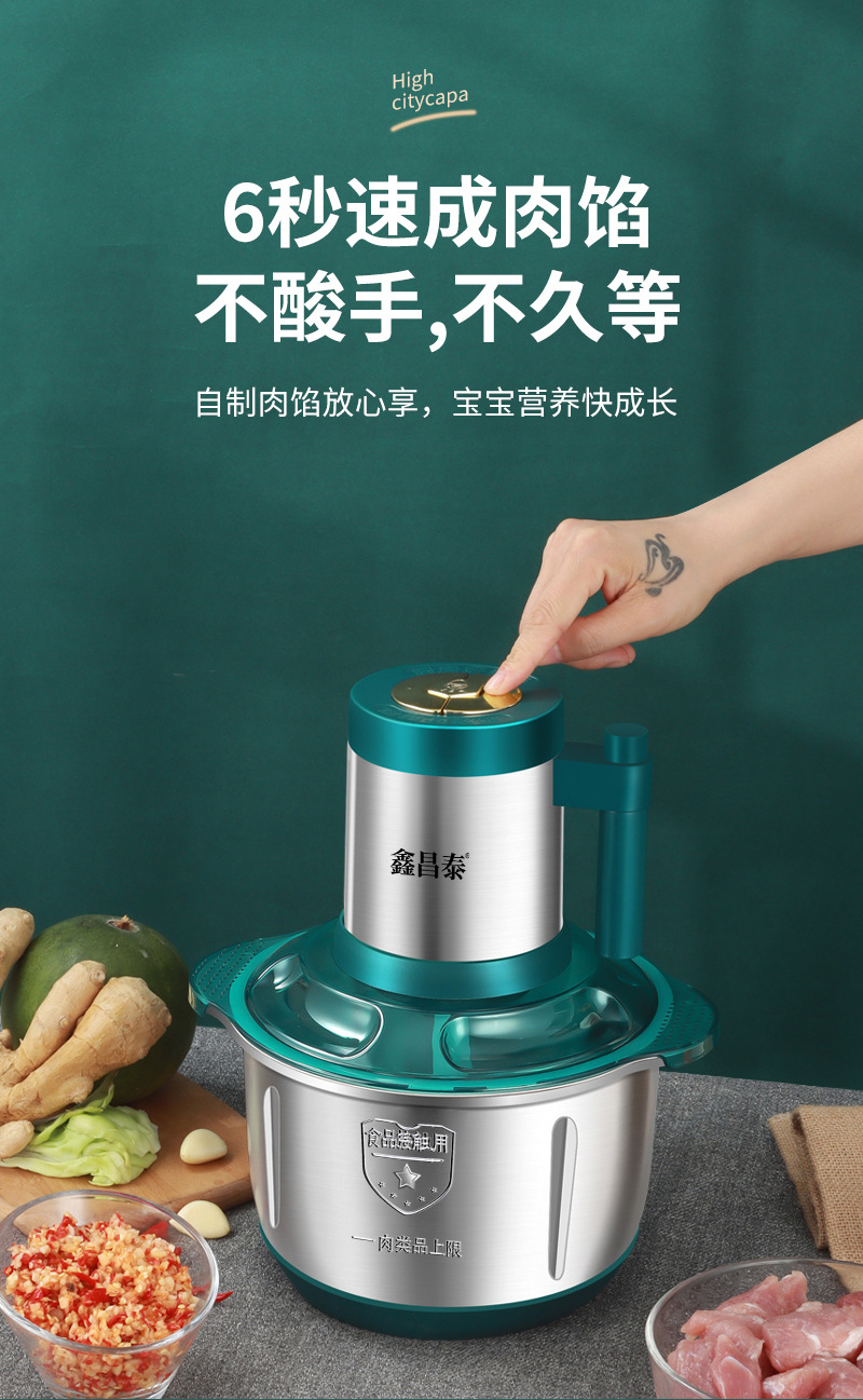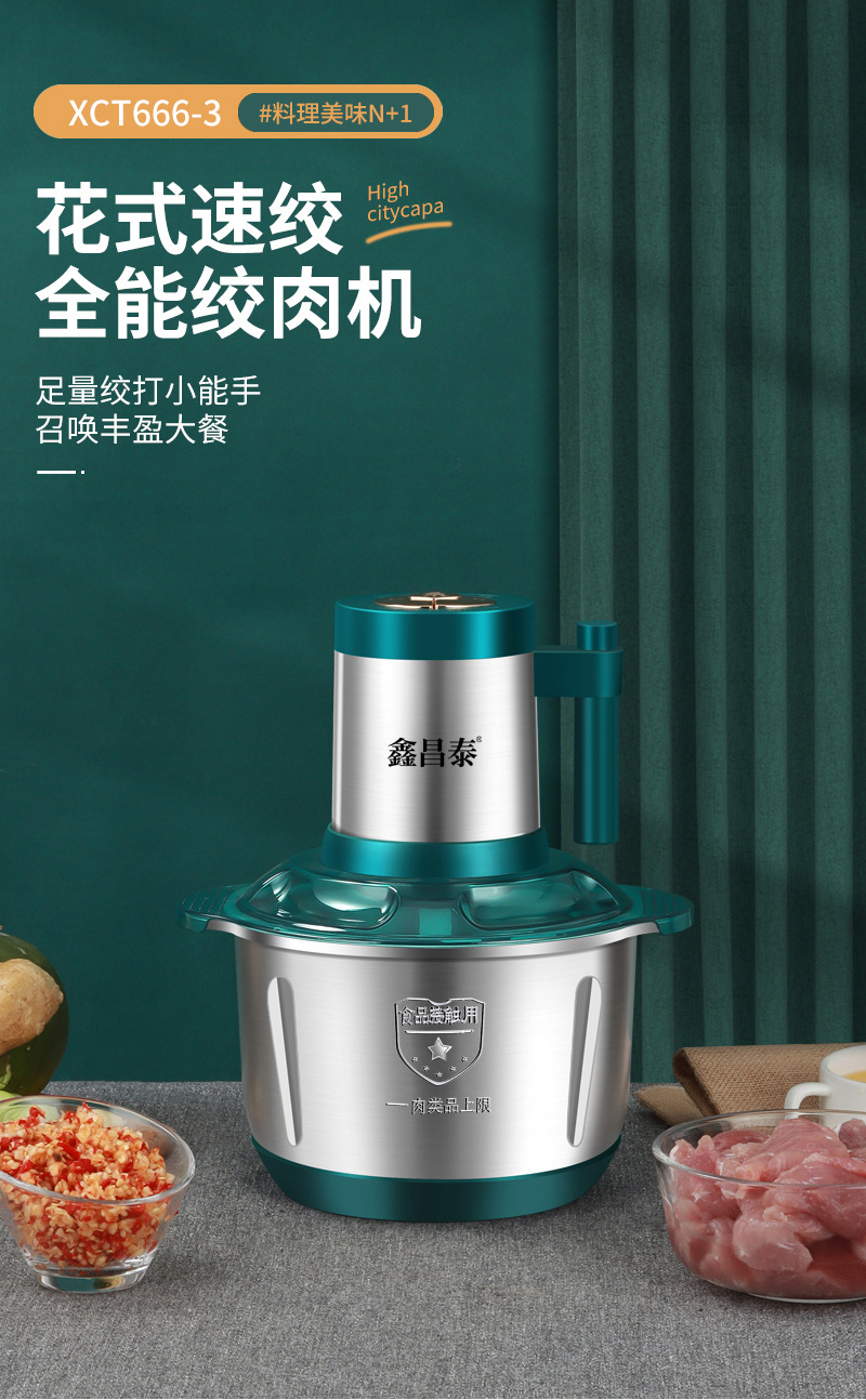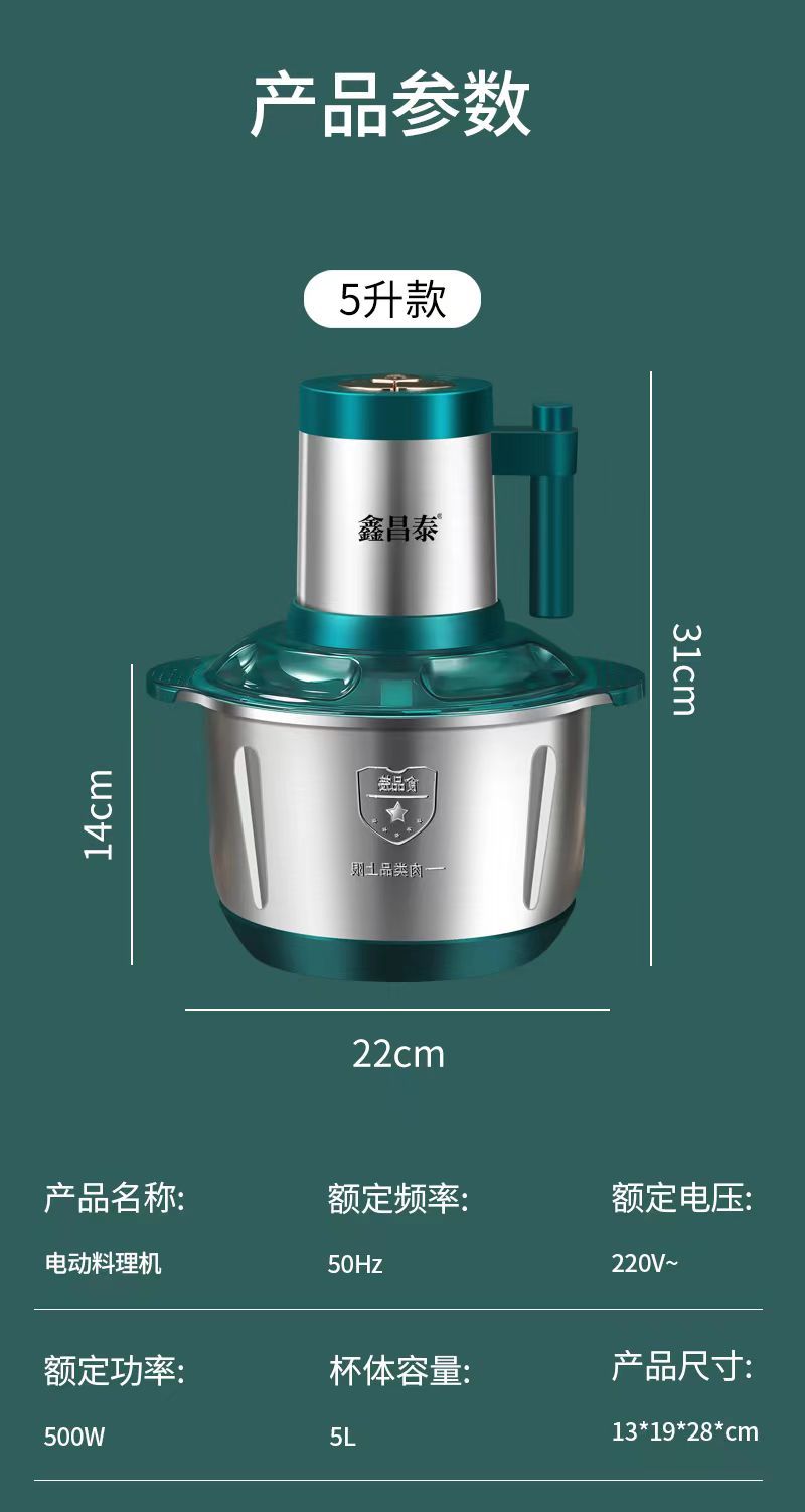 Xinchangtai 5L 스틸 컵 스터핑 머신 및 국수 다기능 다진 고기 마늘 후추 믹서 가정용 고기 분쇄기스토어 가기